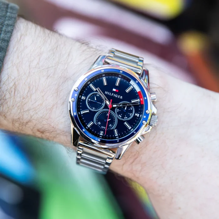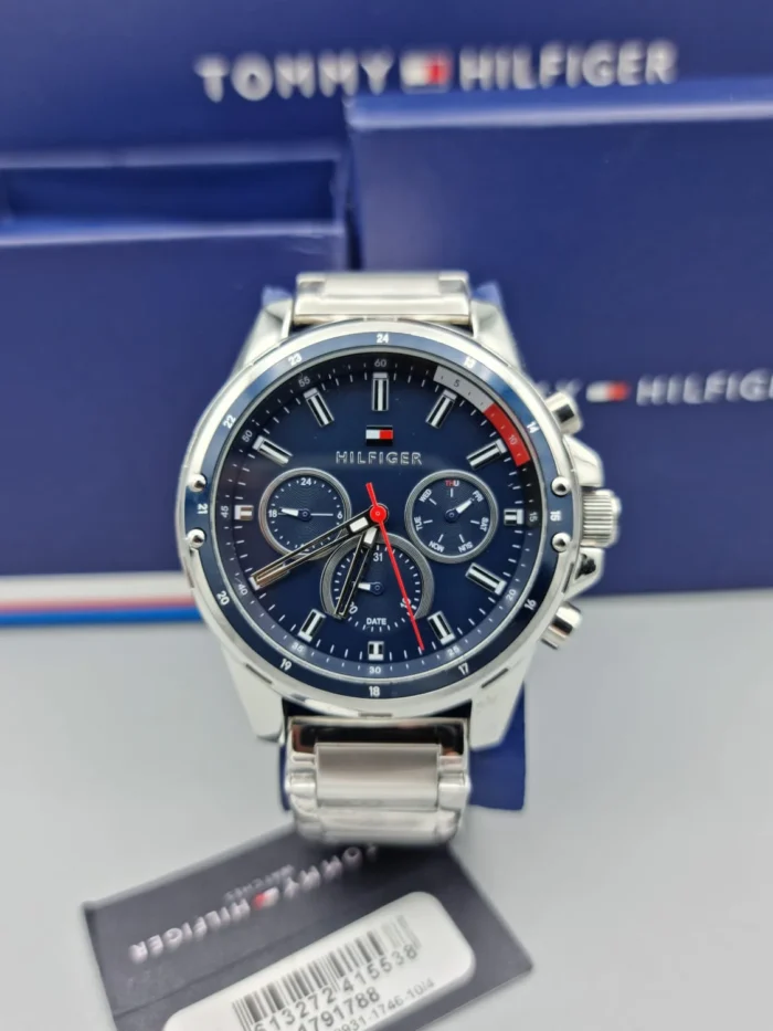 ساعة تومي هيلفيغر للرجال أصلية موديل (ميسون) Mason 1791788 لون ازرق و استيك معدن ستانلس لون فضي.