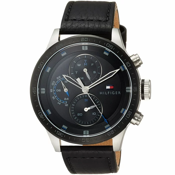 ساعة تومي هيلفيغر Tommy Hilfiger للرجال أصلية موديل (ترينت) 1791810 Trent لون اسود و اوستيك جلد طبيعي لون اسود.