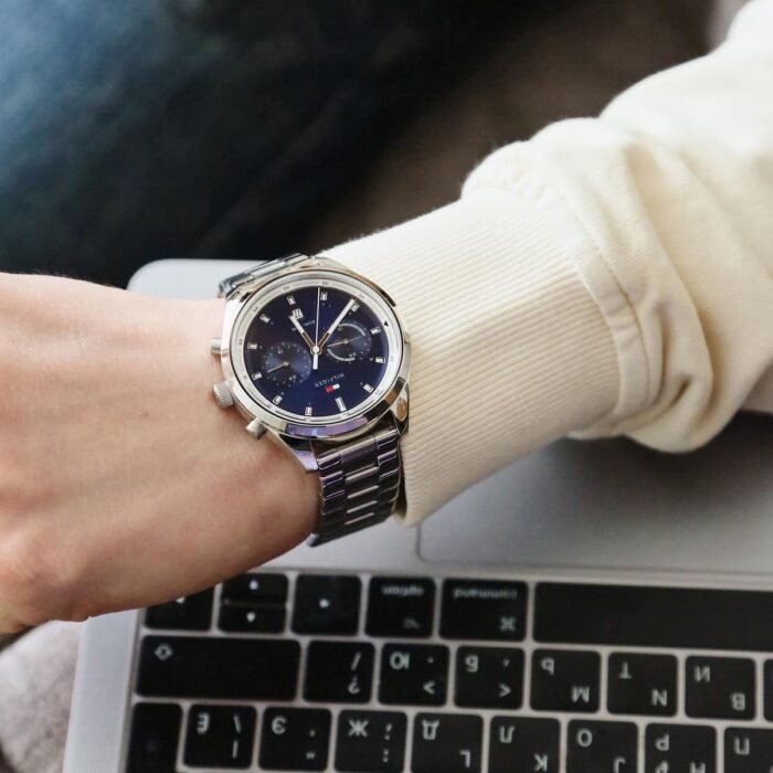 ساعة تومي هيلفيغر للرجال أصلية موديل (بينيت) Bennett 1791725 لون ازرق و استيك معدن ستانلس لون فضي.