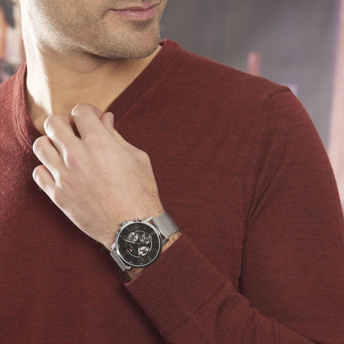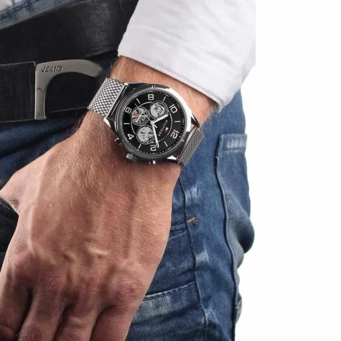 ساعة تومي هيلفيغر للرجال اصلية موديل (كيجان) Keagan 1791292 لون اسود واستيك معدن ستانلس لون فضي.