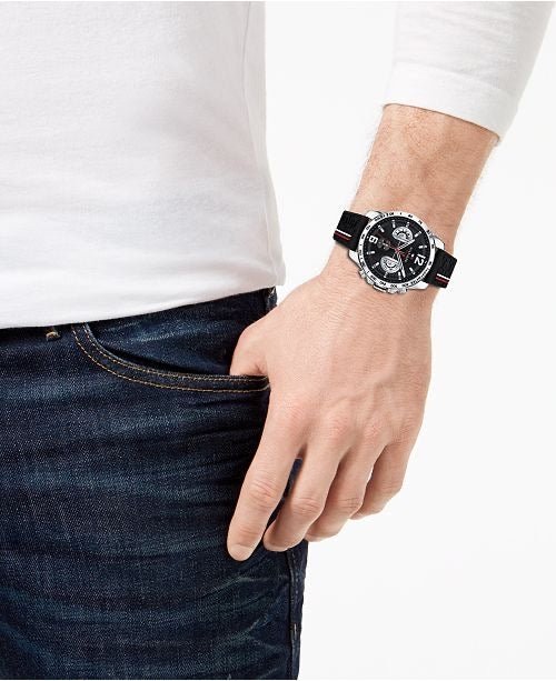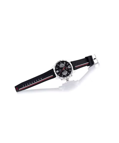 ساعة تومي هيلفيغر للرجال اصلية موديل (ديكر) Decker 1791473 لون اسود واستيك سيليكون مطاط لون اسود.