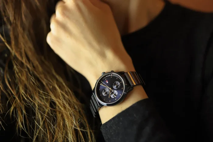 ساعة تومي هيلفيغر للنساء اصلية موديل (جيجي) Gigi 1781893 لون ازرق واستيك معدن ستانلس لون ازرق.