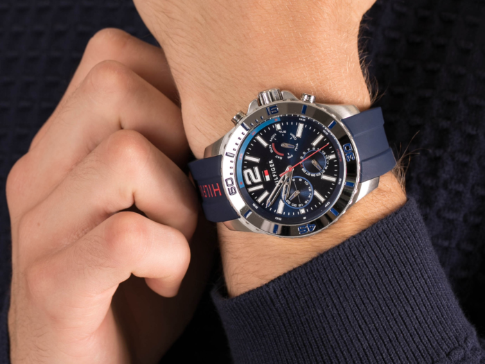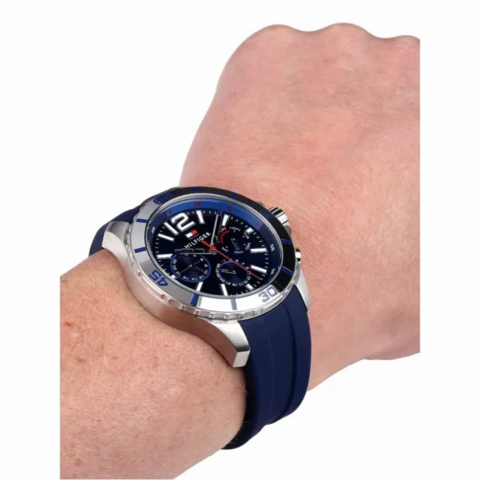 ساعة تومي هيلفيغر للرجال اصلية موديل (نولان) Nolan 1791142 لون ازرق واستيك سيليكون مطاط لون ازرق