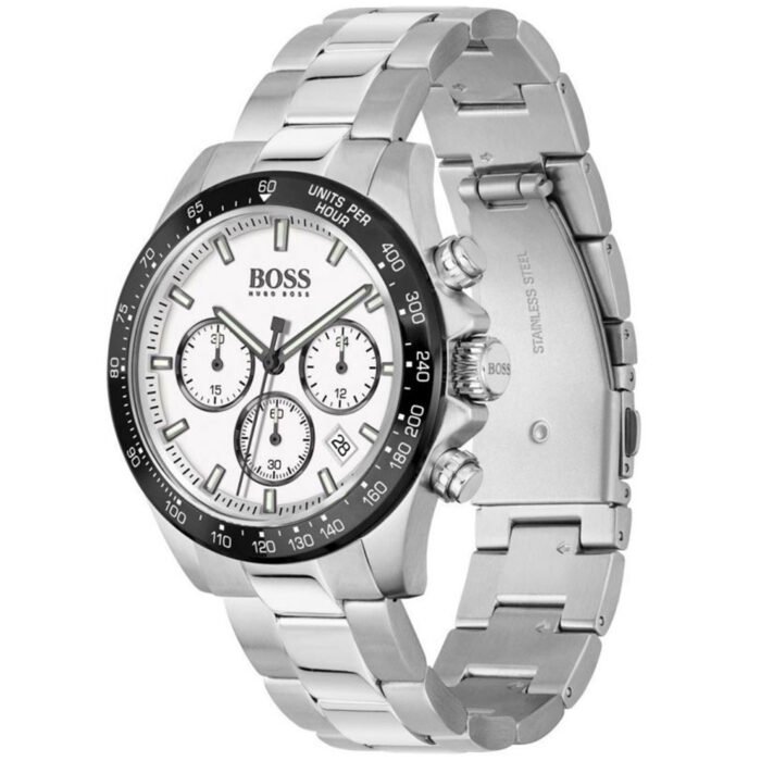 ساعة هوجو بوس للرجال اصلية موديل (هيرو سبورت) Hero Sport 1513875 لون ابيض و اوستيك معدن ستانلس لون فضي.