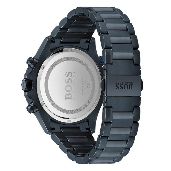 ساعة هوجو بوس للرجال أصلية موديل (جلوبتروتر) Globetrotter 1513824 بلون اسود و استيك معدن بلون ازرق.