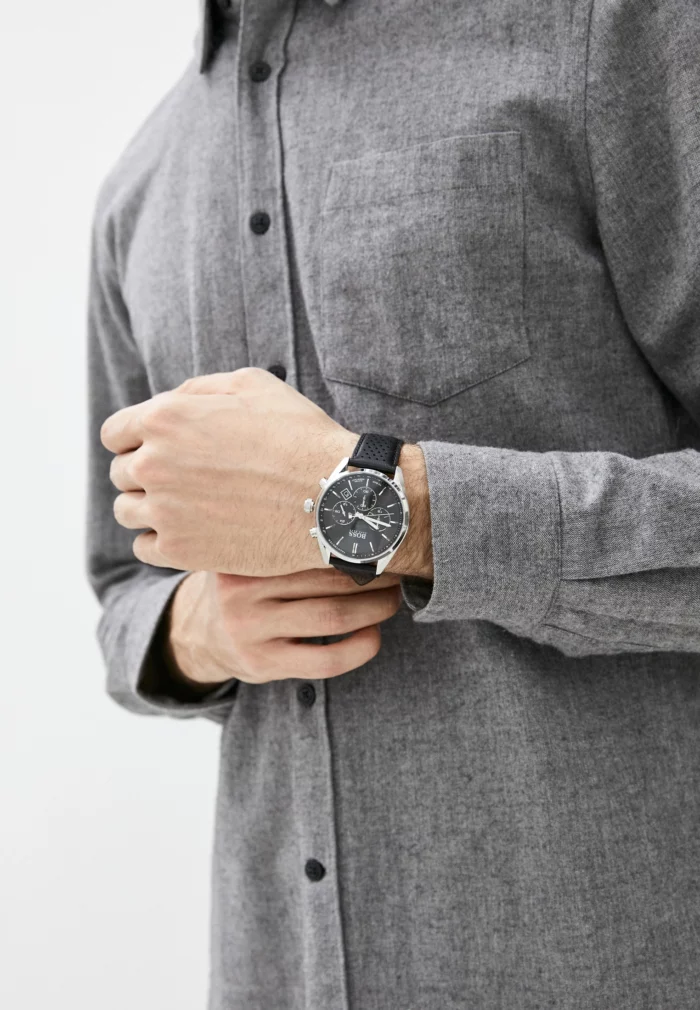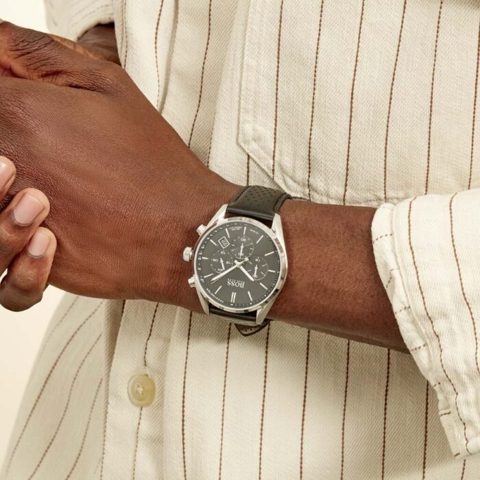 ساعة هوجو بوس للرجال أصلية موديل (شامبيون) Champion 1513816 لون اسود و استيك جلد طبيعي لون اسود.
