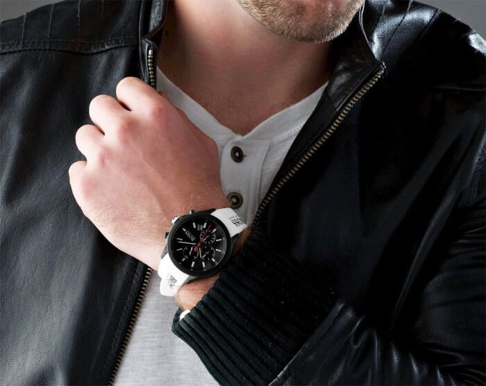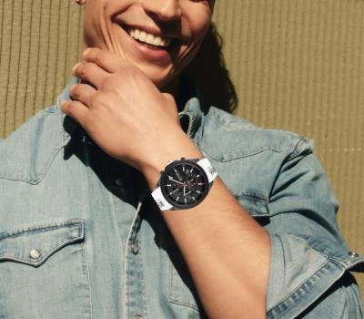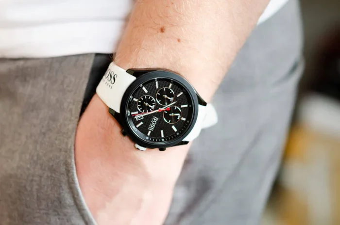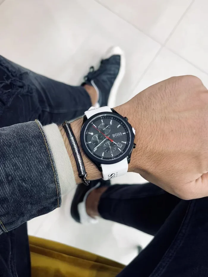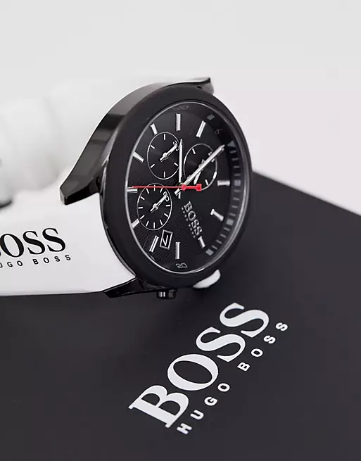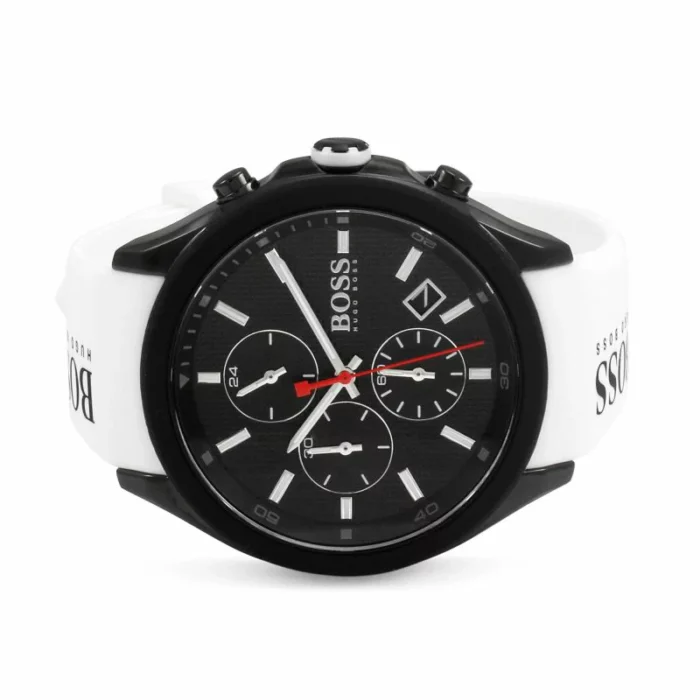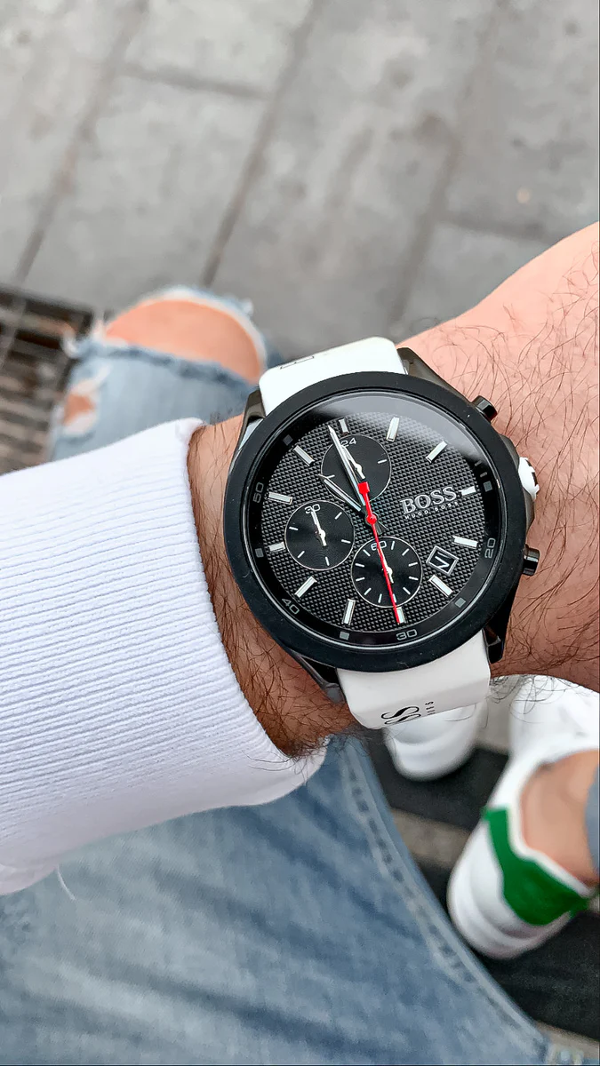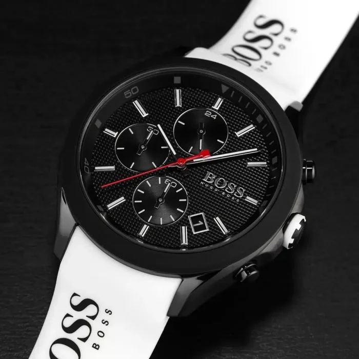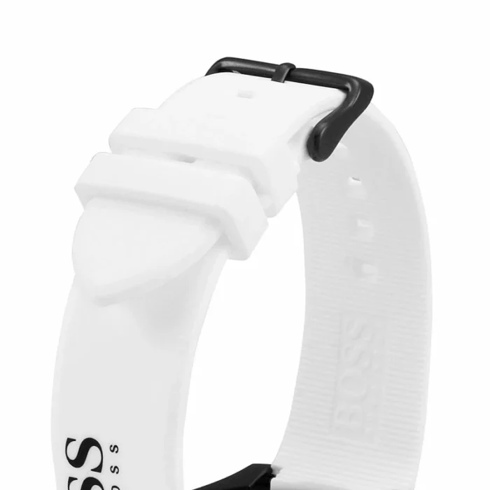 ساعة هوجو بوس أصلية للرجال موديل 1513718 لون اسود و اوستيك سيليكون مطاط لون ابيض.