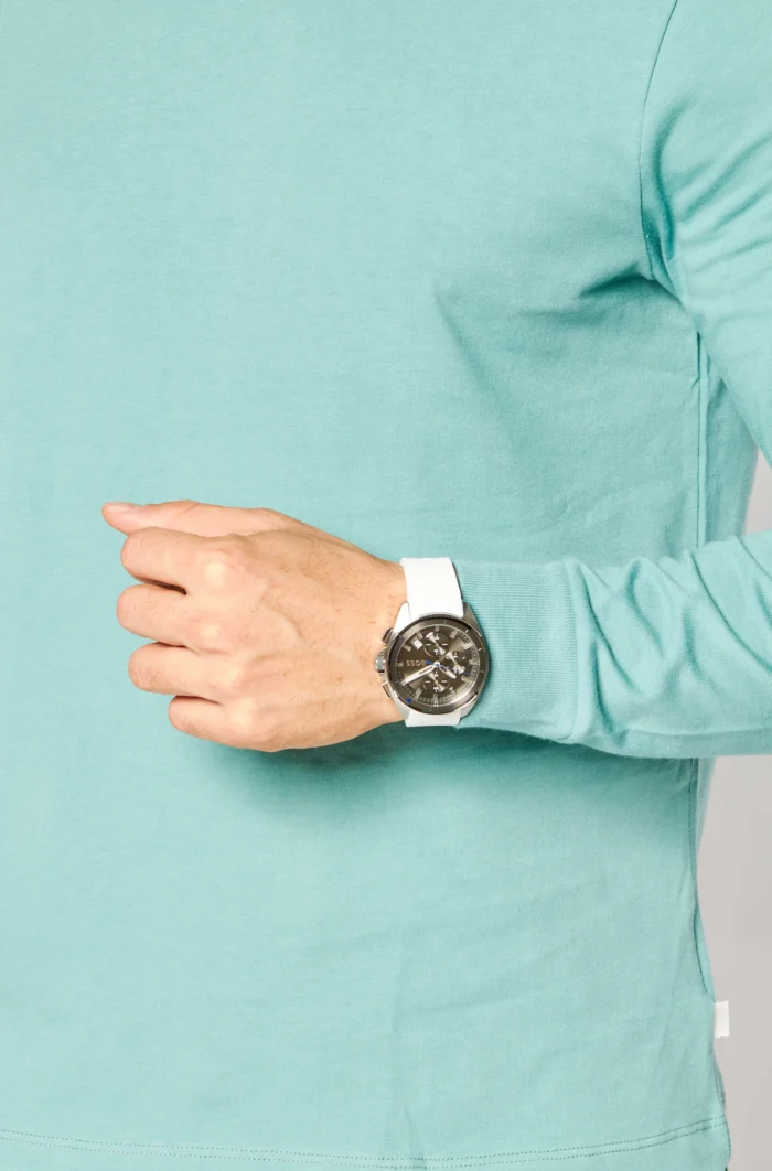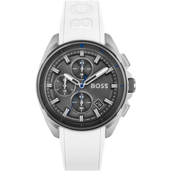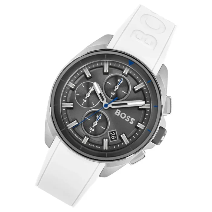 ساعة هوجو بوس للرجال أصلية موديل 1513948 لون رمادي و استيك سيليكون مطاط لون ابيض