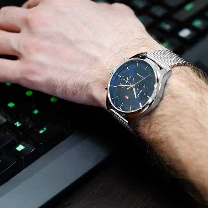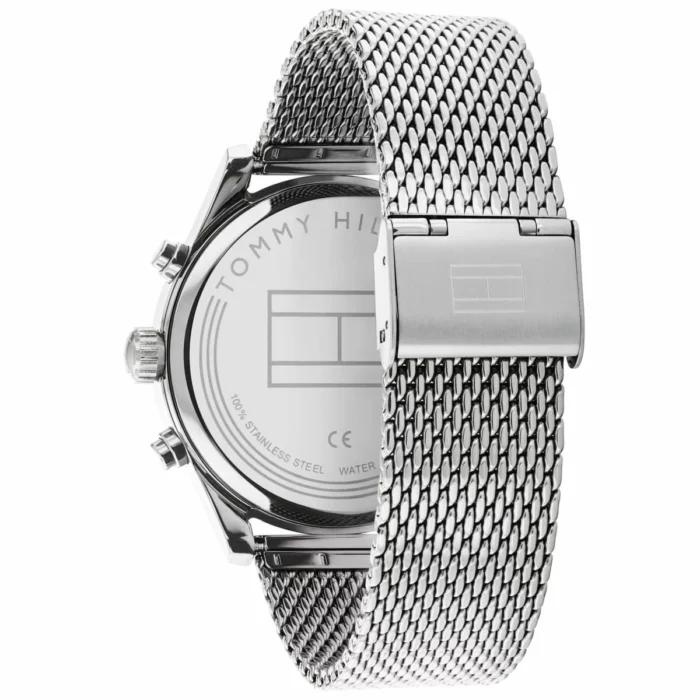 ساعة تومي هيلفيغر للرجال أصلية موديل Sawyer 1710420 لون ازرق و استيك معدن ستانلس لون فضي