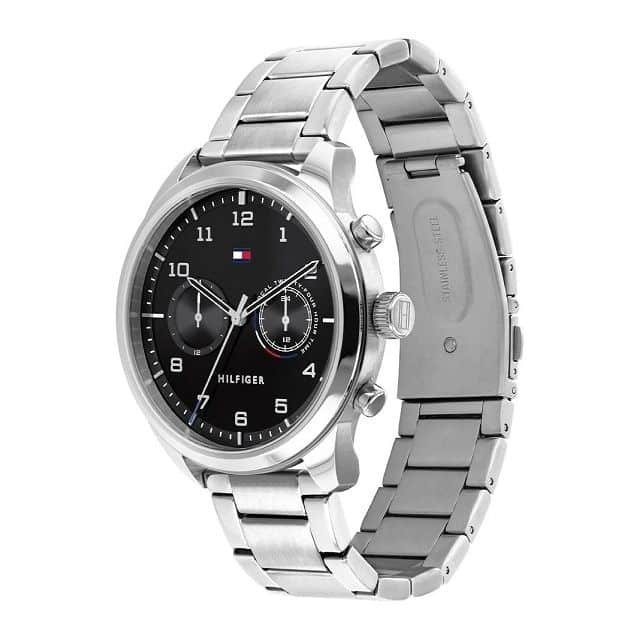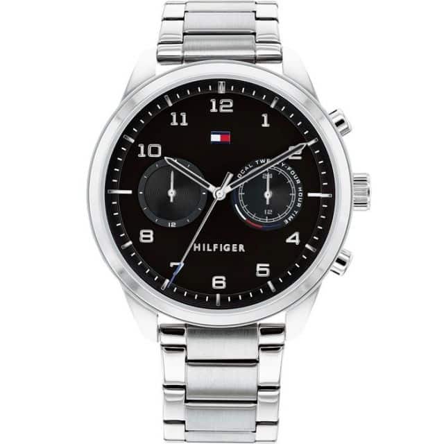 ساعة تومي هيلفيغر للرجال أصلية موديل 1791784 بلون اسود و استيك معدن بلون فضي