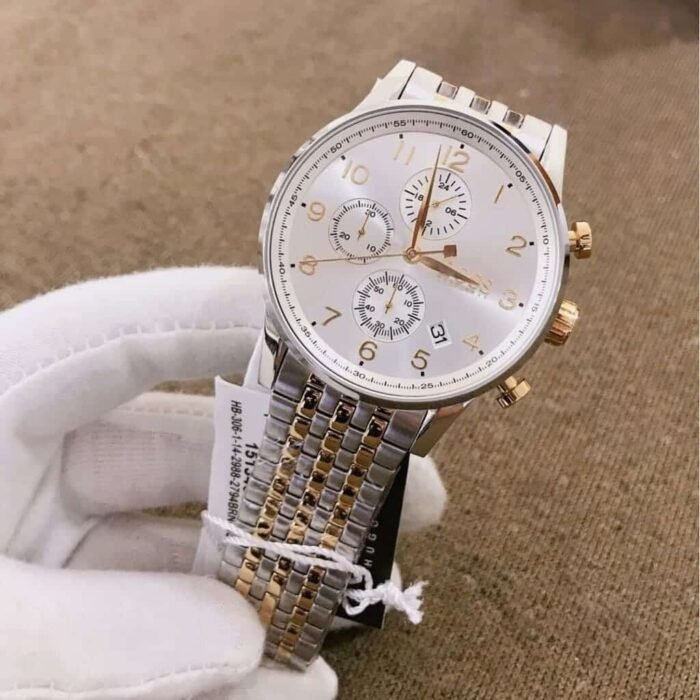 ساعة هوغو بوس للرجال اصلية موديل (نافيجيتور) Navigator 1513499 بلون ابيض واستيك معدن لون فضي * ذهبي.