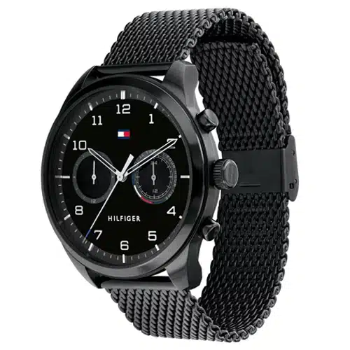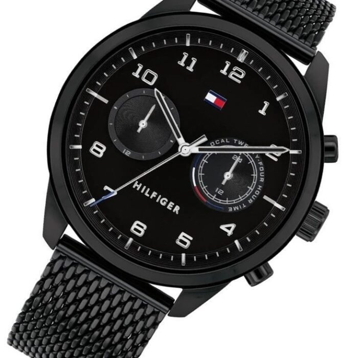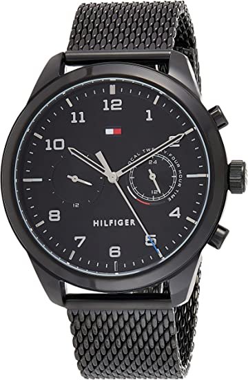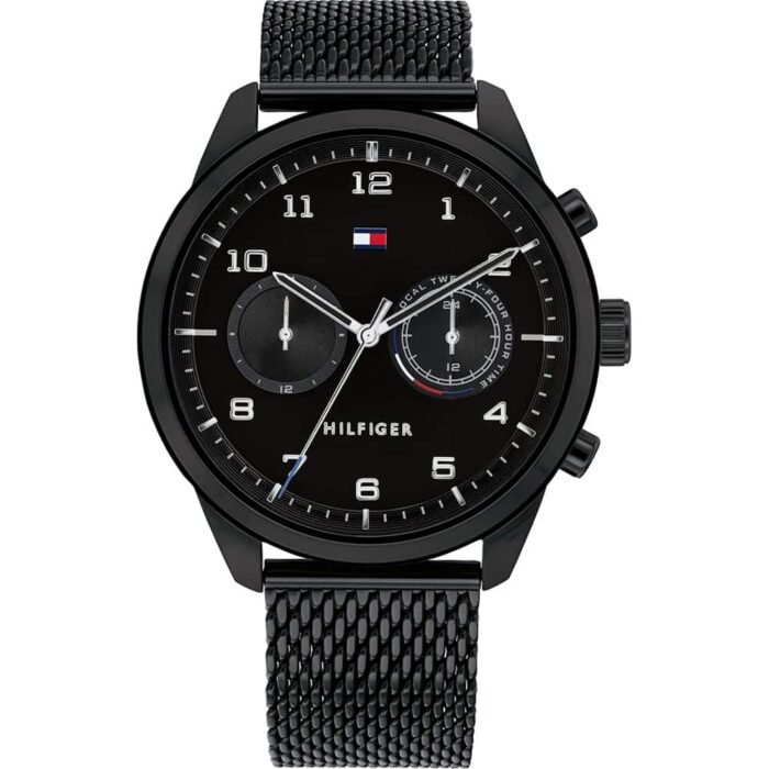 ساعة تومي هيلفيغر للرجال أصلية موديل 1791787 بلون اسود و استيك معدن بلون اسود