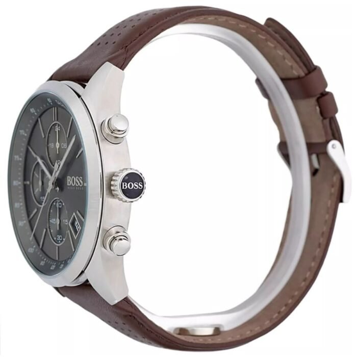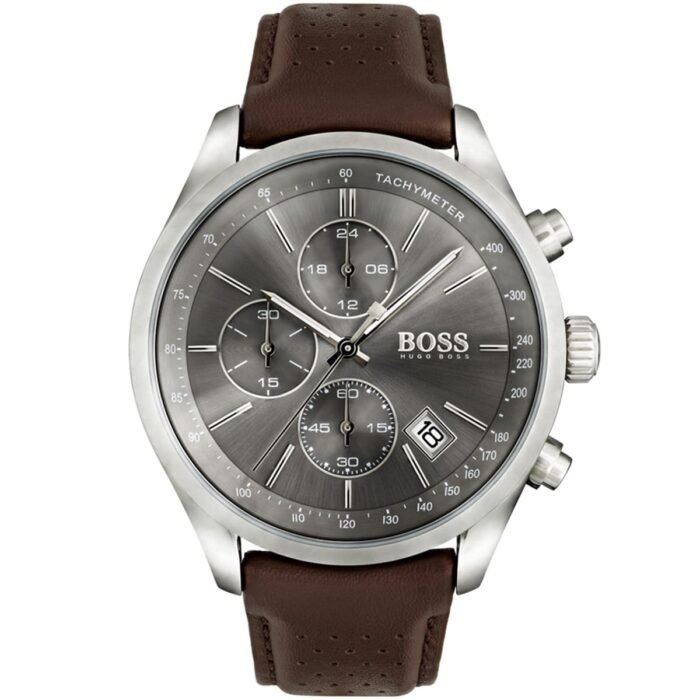ساعة هوجو بوس للرجال أصلية موديل Grand Prix 1513476 لون رمادي و استيك جلد لون بني.