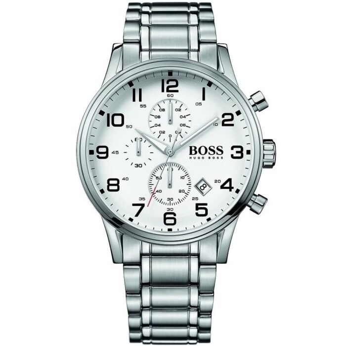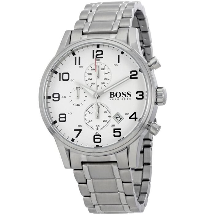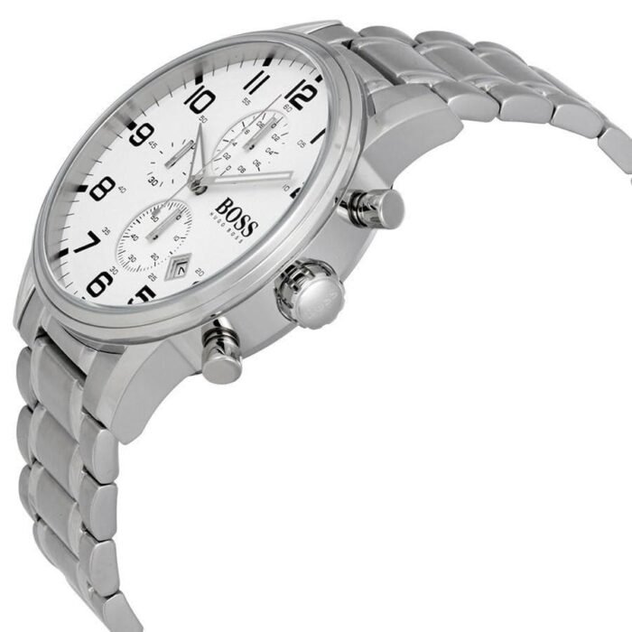 ساعة هوغو بوس للرجال اصلية موديل (ايرولاينر) Aeroliner 1513182 بلون ابيض واستيك معدن لون فضي.