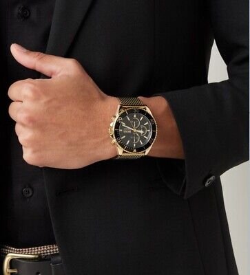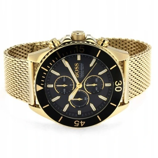 ساعة هوجو بوس للرجال اصلية موديل Ocean Edition 1513703 لون اسود واستيك معدن ستانلس لون ذهبي.