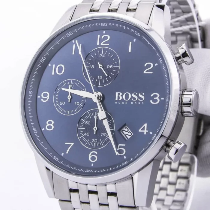 ساعة هوغو بوس للرجال اصلية موديل (نافيجيتور) Navigator 1513498 لون ازرق واستيك معدن لون فضي.
