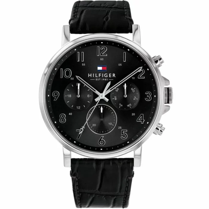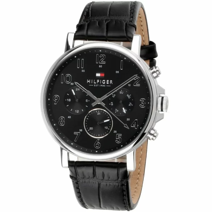 ساعة تومي هيلفيغر للرجال اصلية موديل Daniel 1710381 لون اسود واستيك جلد طبيعي لون اسود.
