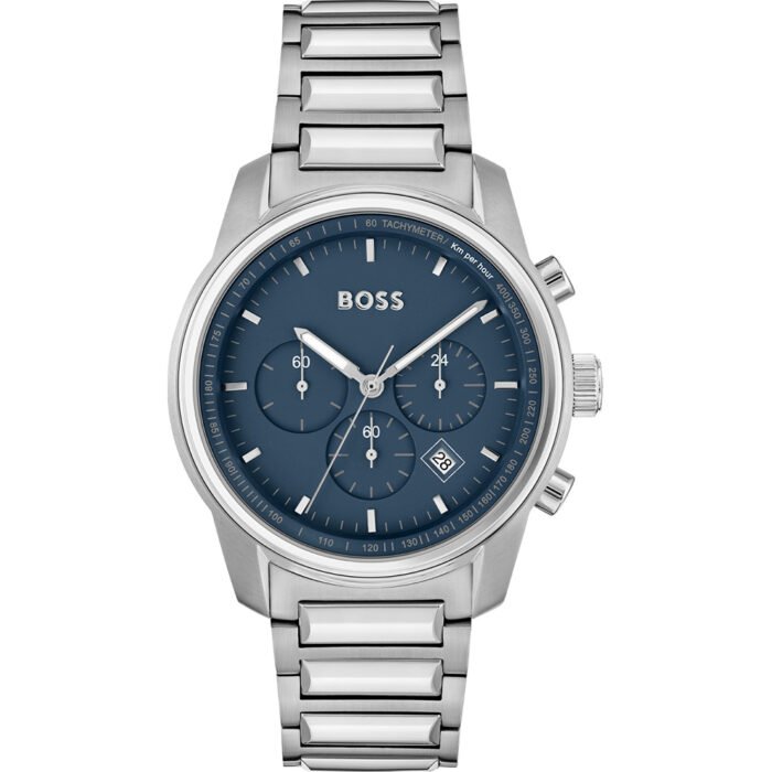 ساعة هوجو بوص للرجال اصليه موديل 1514007 بلون ازرق واوستيك معدن بلون فضي.