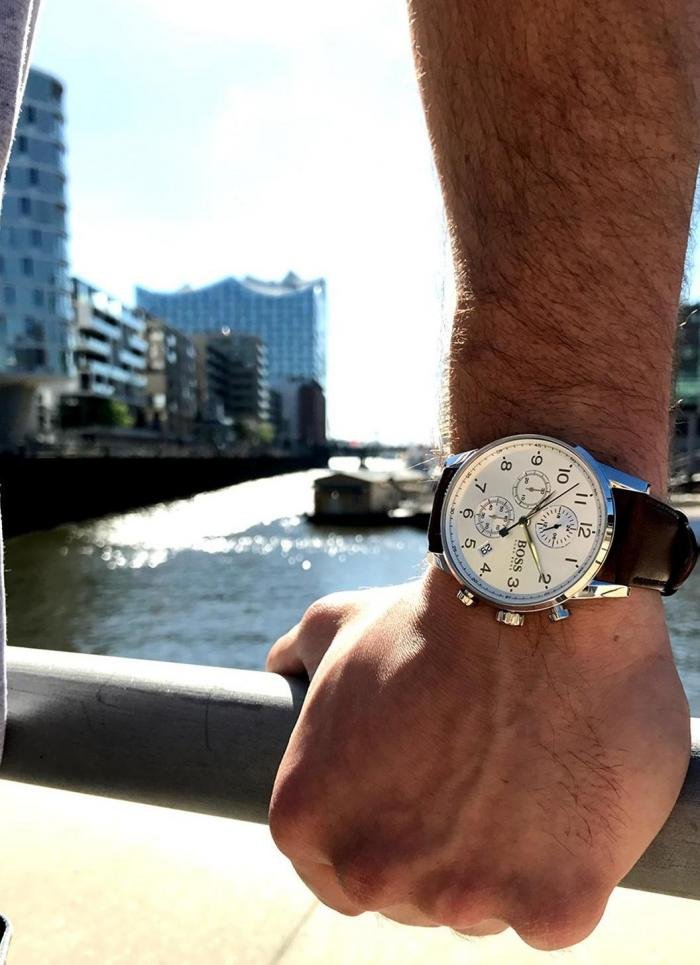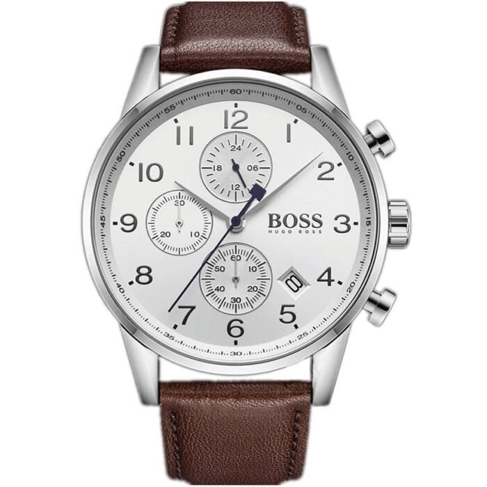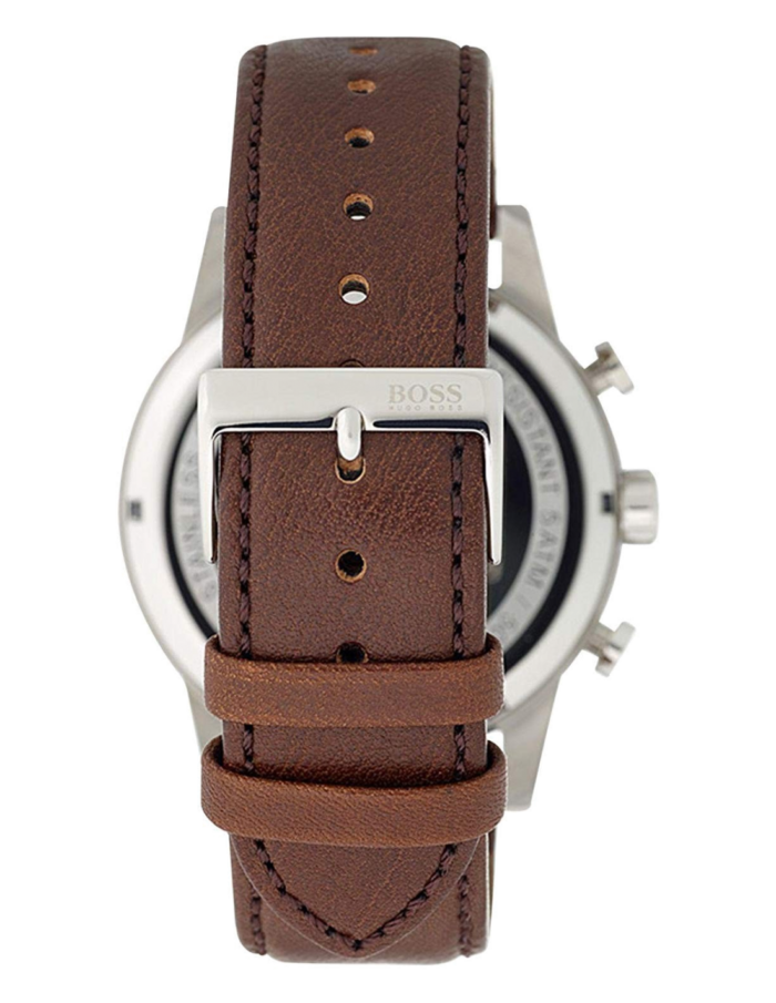 ساعة هوجو بوس للرجال اصلية موديل Navigator 1513495 لون فضي واستيك جلد طبيعي لون بني.