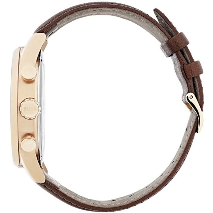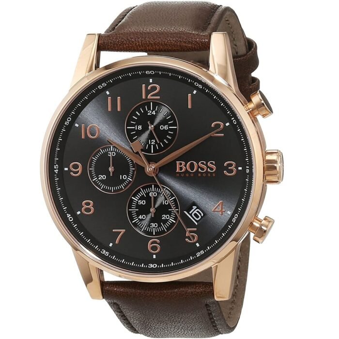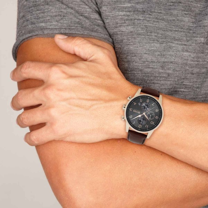 ساعة هوجو بوس للرجال اصلية موديل Navigator 1513496 لون رمادي واستيك جلد طبيعي لون بني.