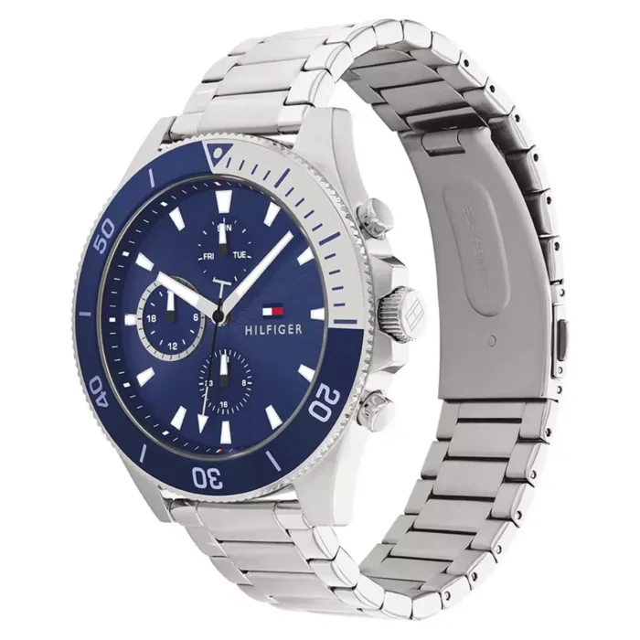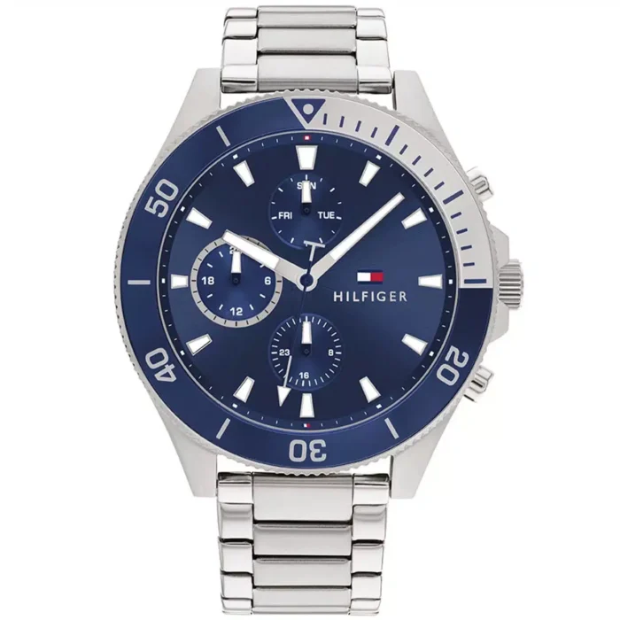 ساعة تومي هيلفيغر للرجال أصلية موديل (لاسون ) LARSON 1791917 بلون ازرق و استيك ستانلس ستيل بلون فضي