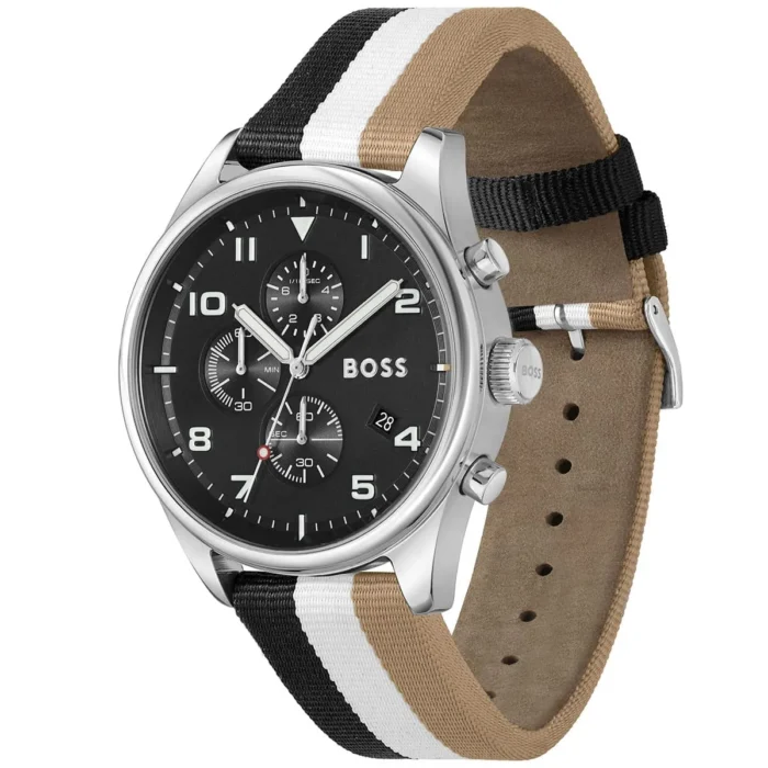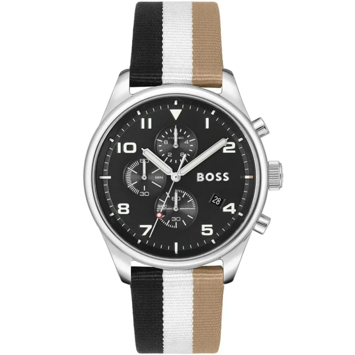 ساعة هوجو بوس Hugo Boss للرجال أصلية موديل (فيو) 1514062 View لون اسود و استيك الياف نسيج متعدد الالوان.