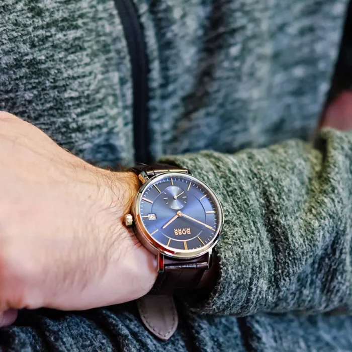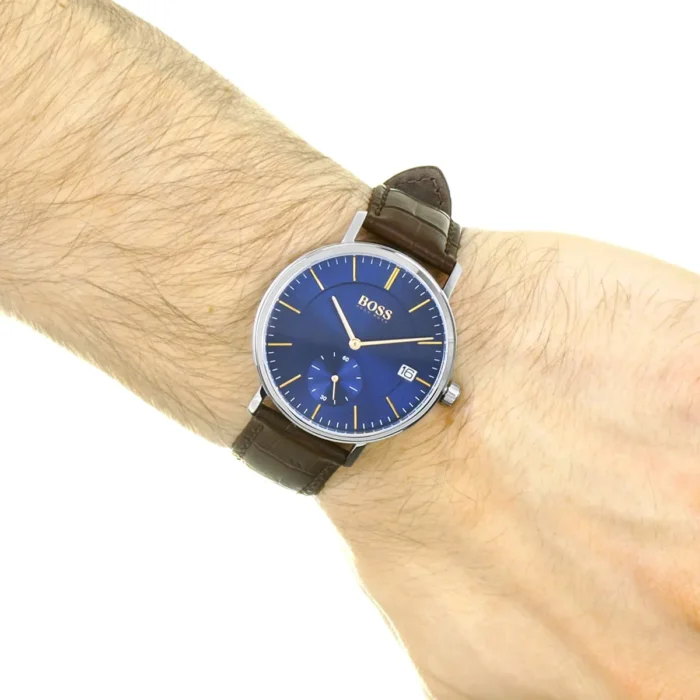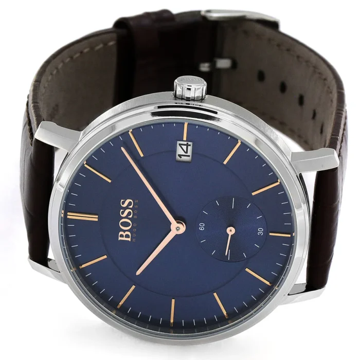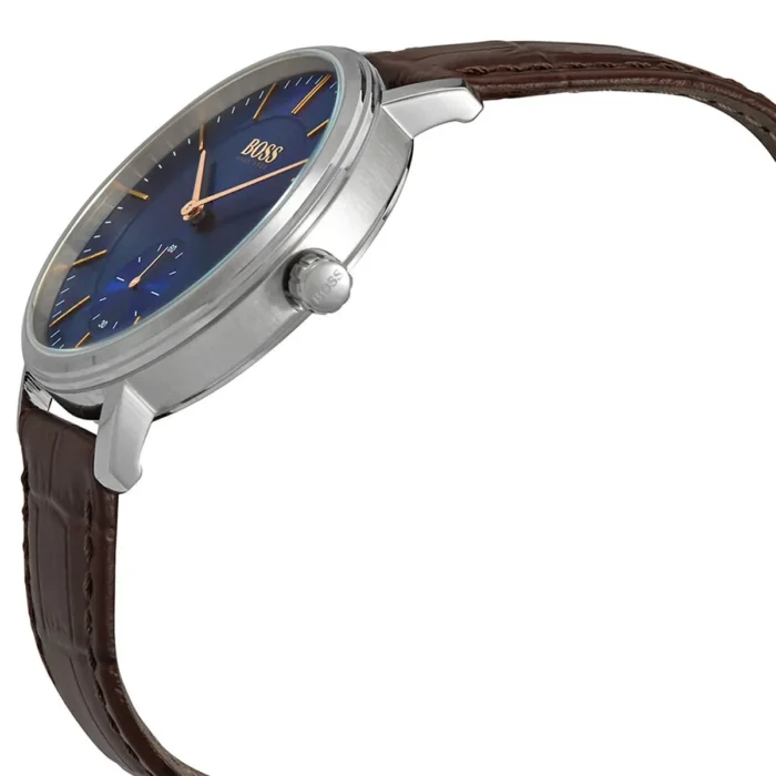 ساعة هوجو بوس Hugo Boss للرجال أصلية موديل 1513639 Corporal لون ازرق و استيك جلد طبيعي لون بني