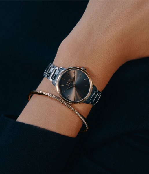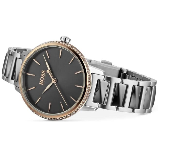 ساعة هوجو بوس للنساء اصلية موديل 1502569 لون رمادي واستيك معدن ستانلس لون رمادي.