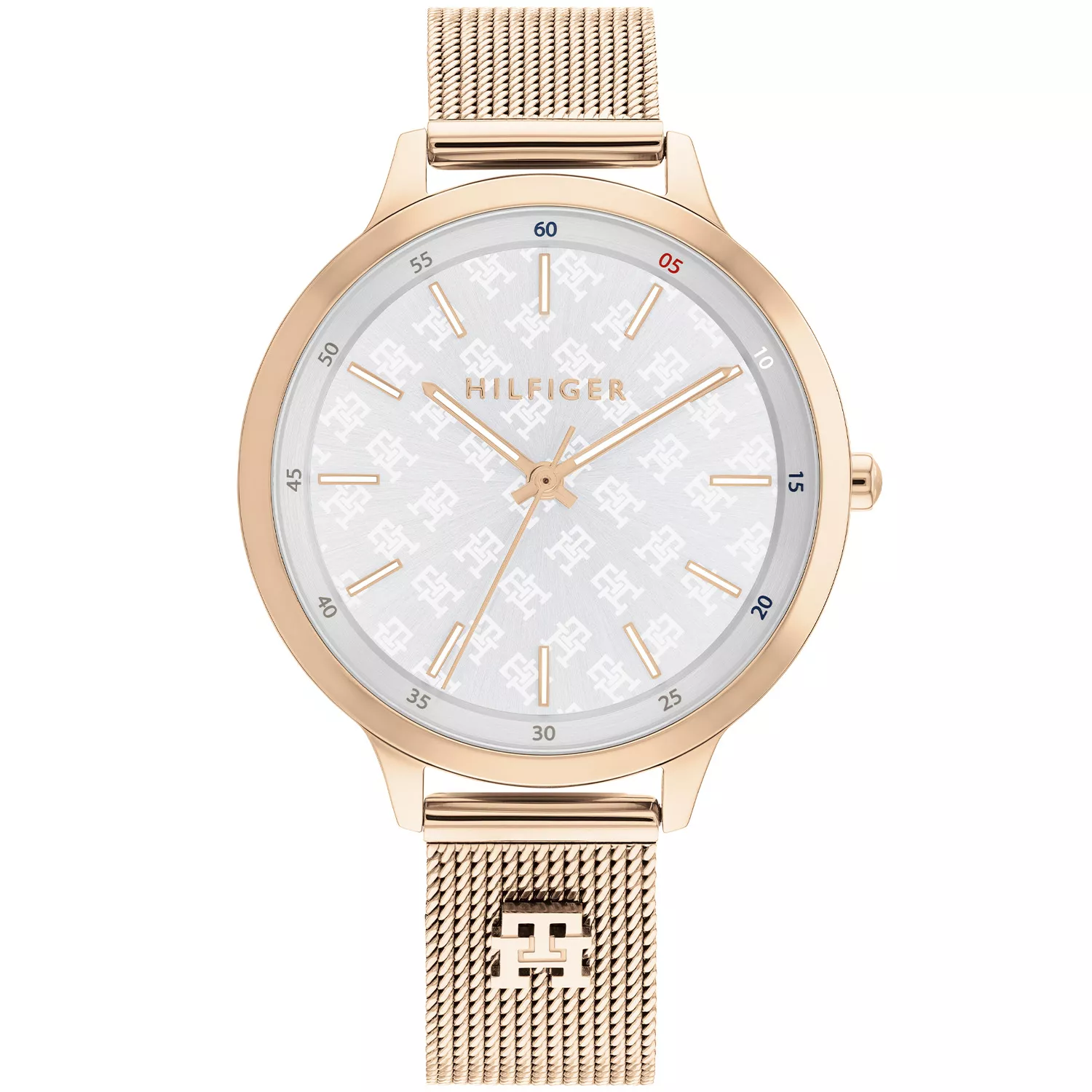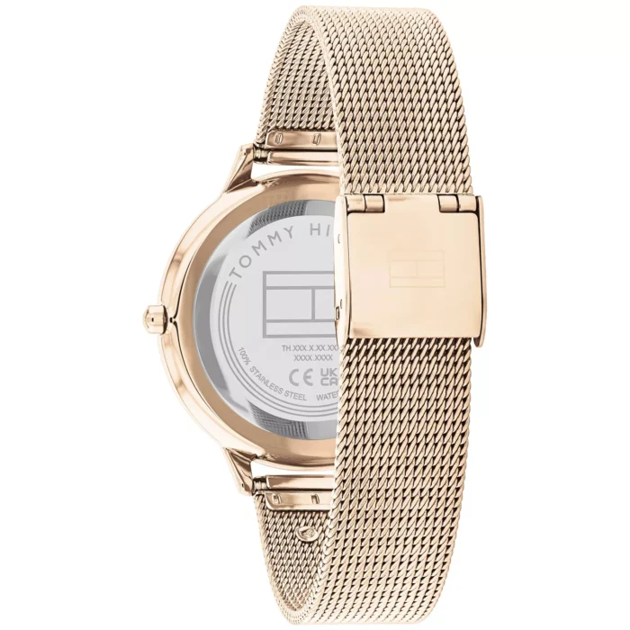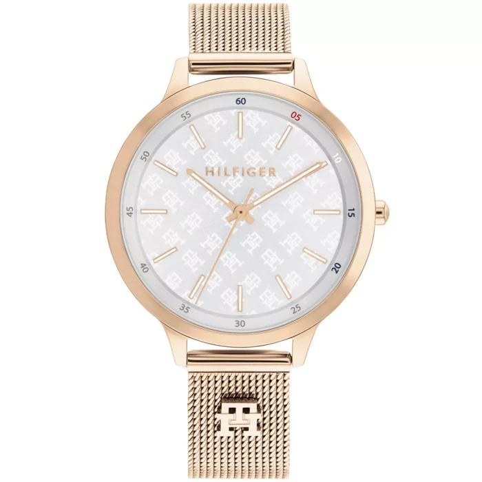 ساعة تومي هيلفيغر Tommy Hilfiger للنساء أصلية موديل 1782616 لون فضي و استيك معدن ستانلس ستيل لون روز جولد.