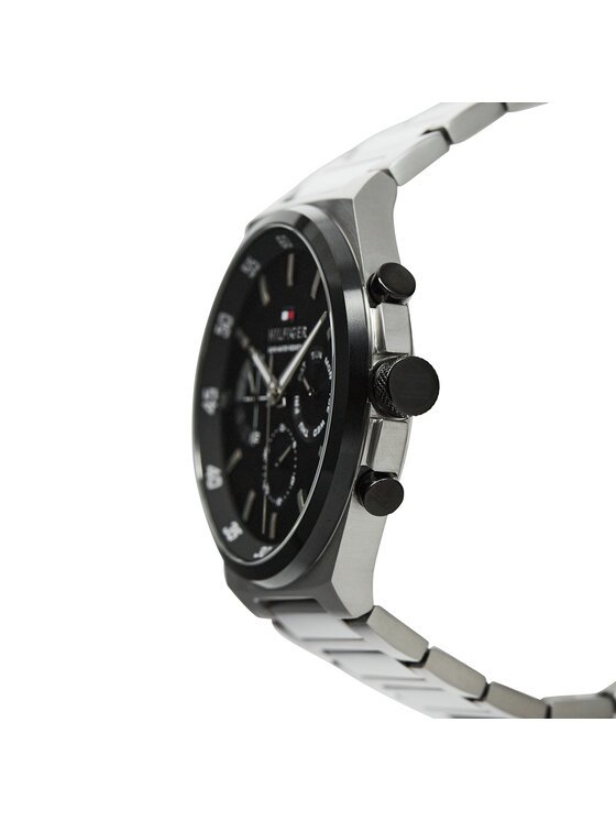ساعة تومي هيلفيغر Tommy Hilfiger للرجال أصلية موديل 1792087 لون اسود و استيك معدن ستانلس لون فضي.