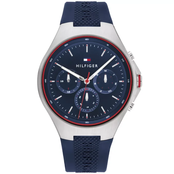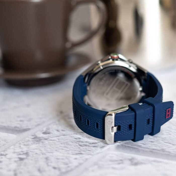 ساعة تومي هيلفيغر Tommy Hilfiger للرجال أصلية موديل 1792057 Justin لون ازرق و استيك سيليكون مطاط لون ازرق.