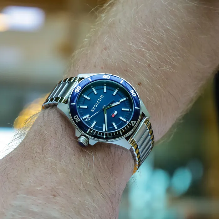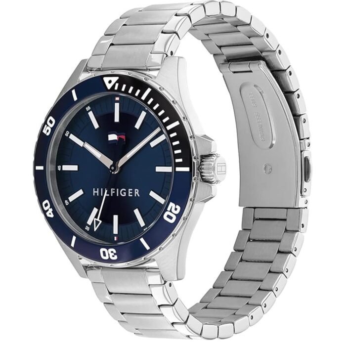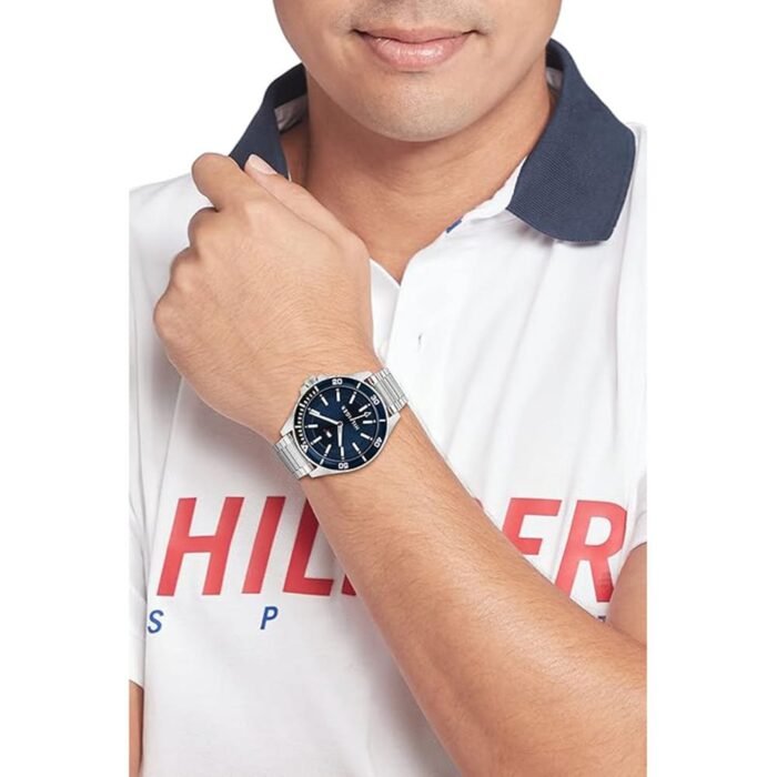 ساعة تومي هيلفيغر Tommy Hilfiger للرجال أصلية موديل 1792012 لون ازرق و استيك معدن ستانلس ستيل لون فضي.