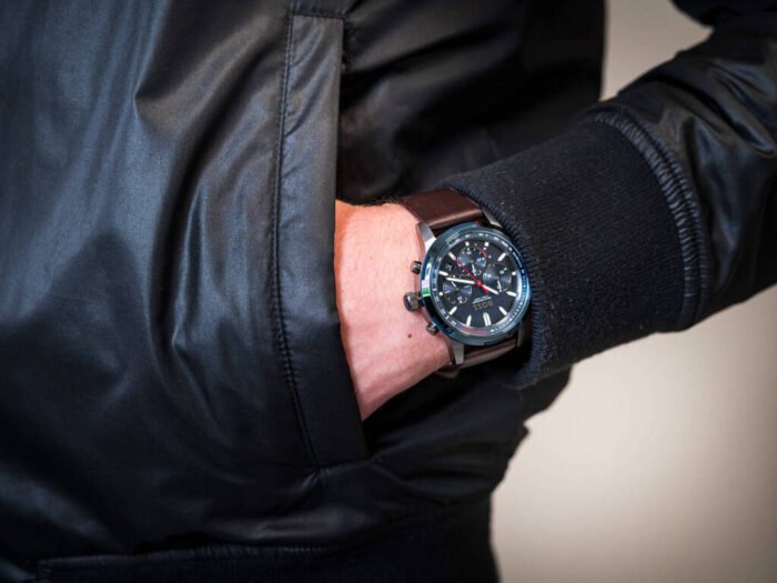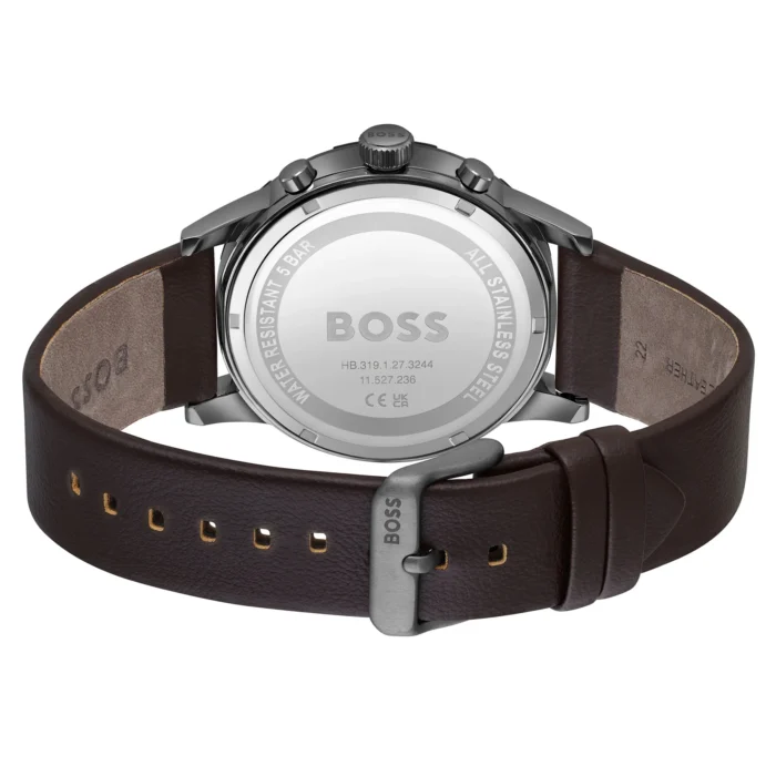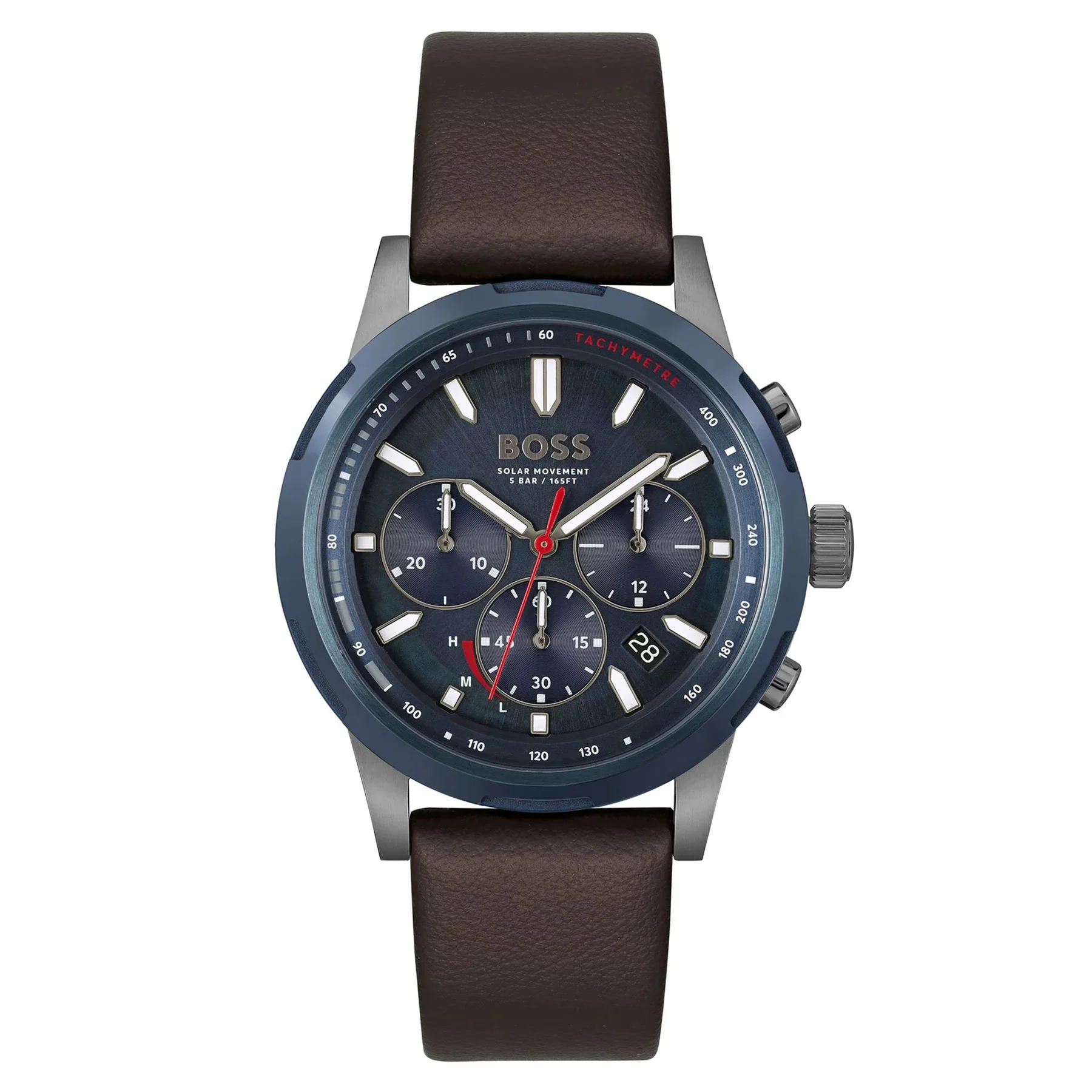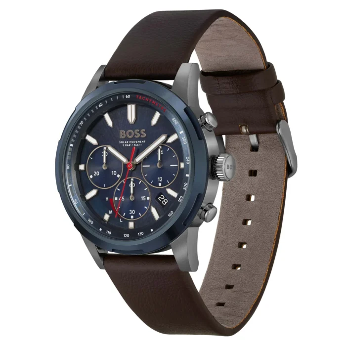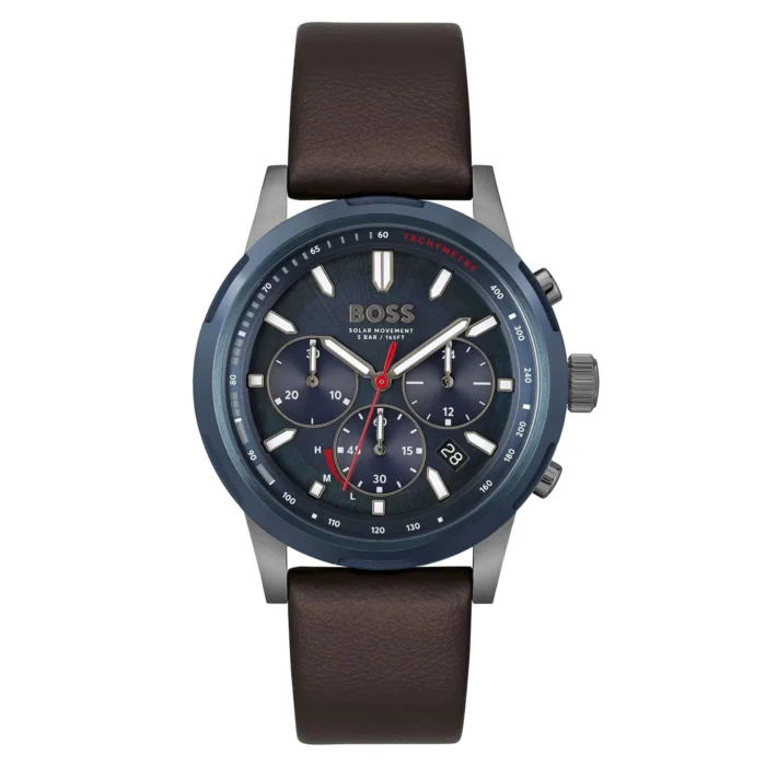 ساعة هوجو بوس Hugo Boss للرجال أصلية موديل 1514030 لون ازرق و استيك جلد طبيعي لون بني.