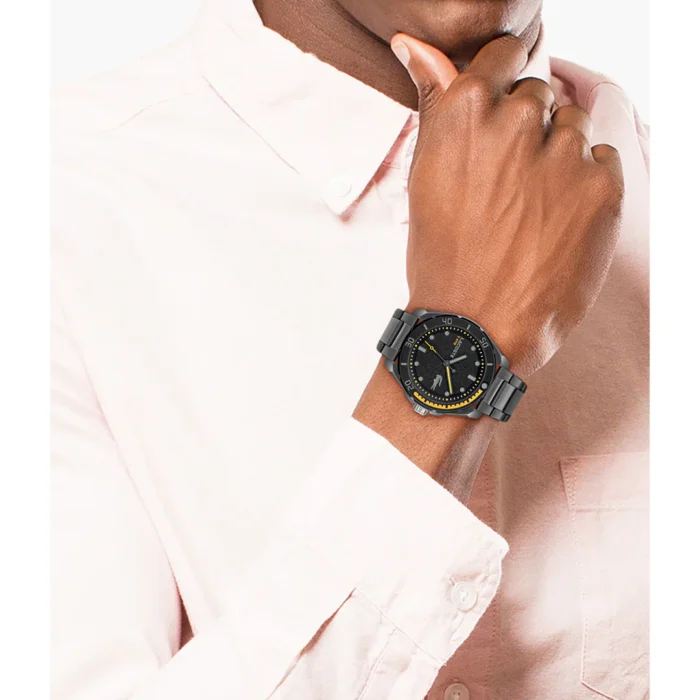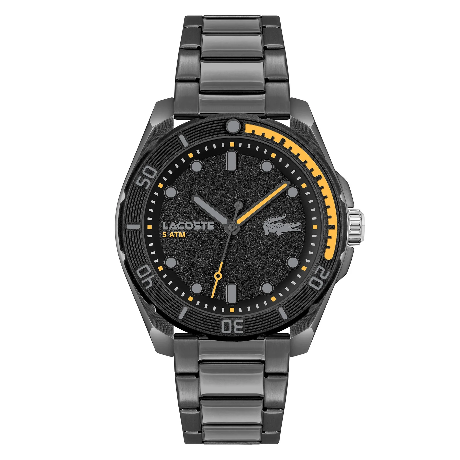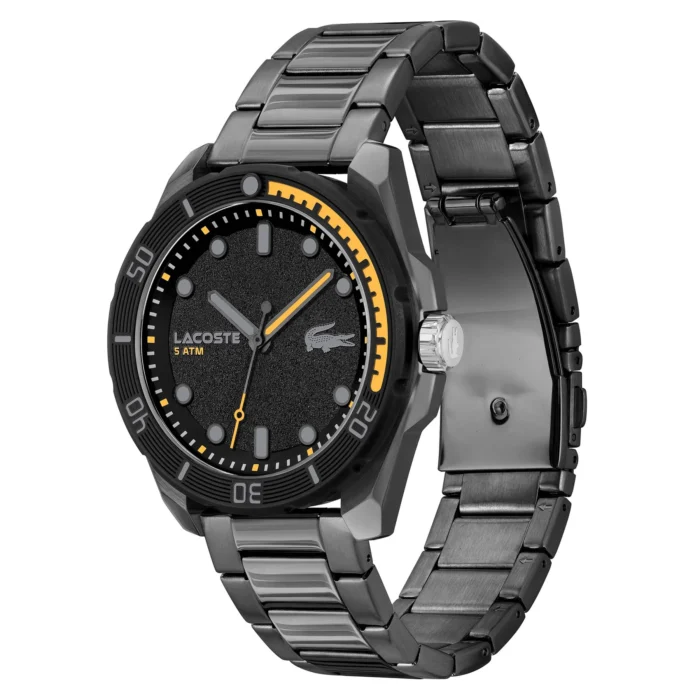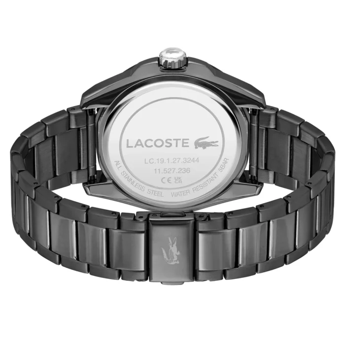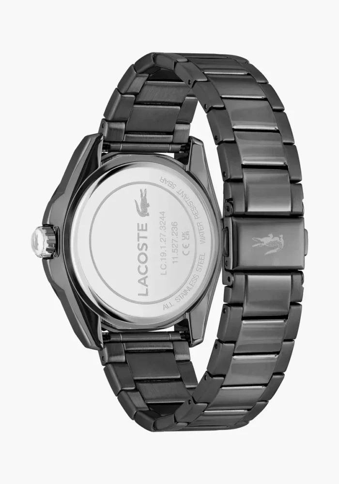 ساعة لاكوست Lacoste للرجال أصلية موديل 2011288 لون اسود و استيك معدن ستانلس لون رمادي.