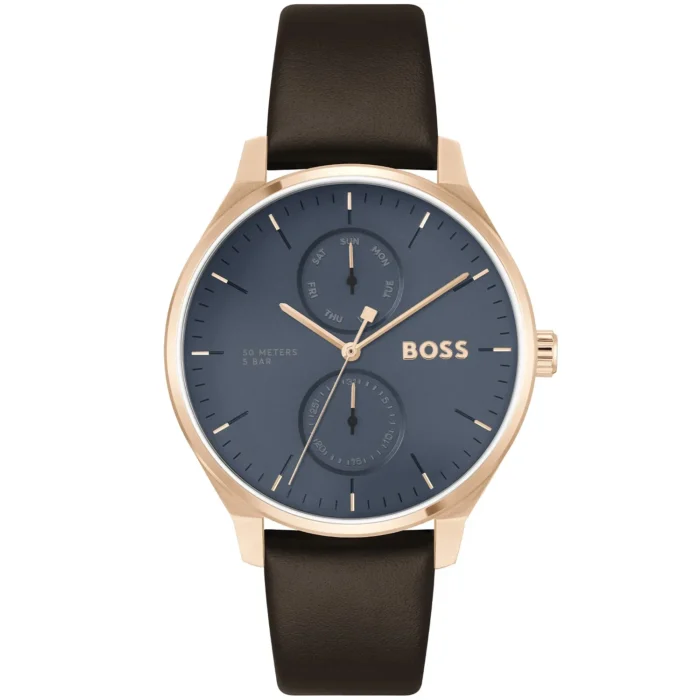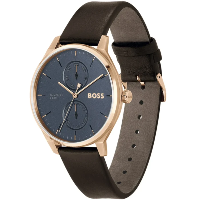 ساعة هوجو بوس Hugo Boss للرجال أصلية موديل 1514103 لون ازرق و استيك جلد طبيعي لون بني.