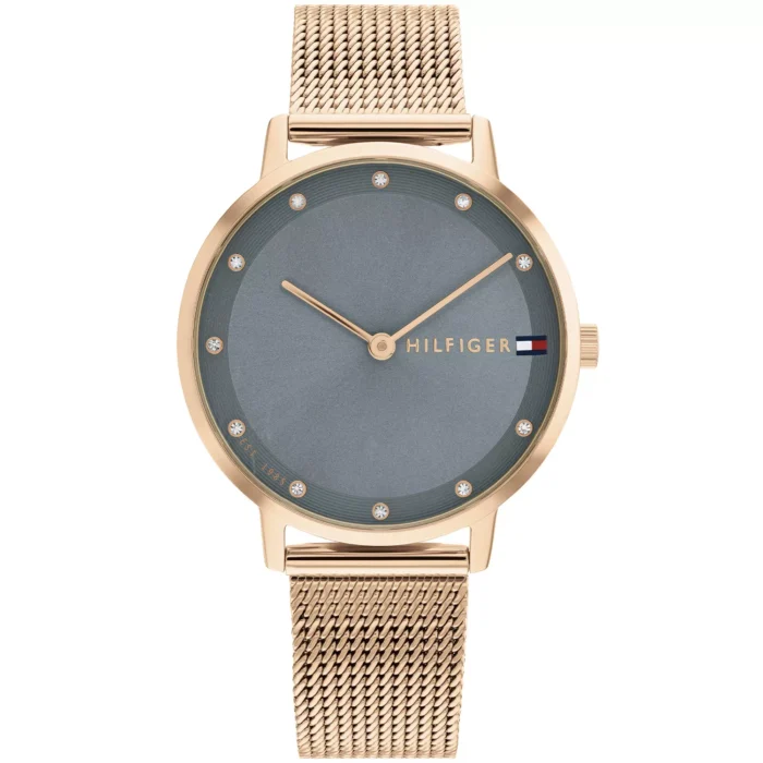 ساعة تومي هيلفيغر Tommy Hilfiger للنساء أصلية موديل 1782669 لون رمادي و استيك معدن ستانلس ستيل لون روز جولد.