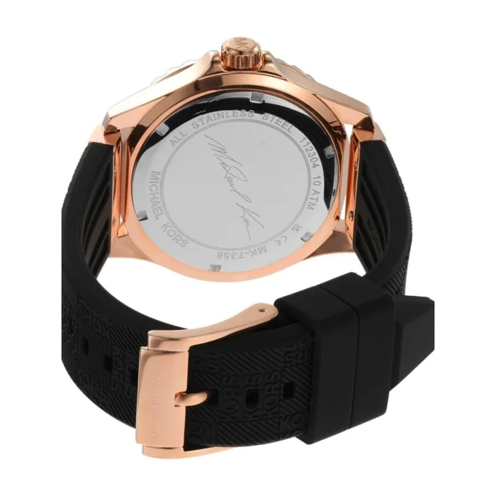 ساعة مايكل كورس Michael Kors للنساء أصلية موديل Everest MK7358 لون روز جولد و استيك سيليكون مطاط لون اسود.