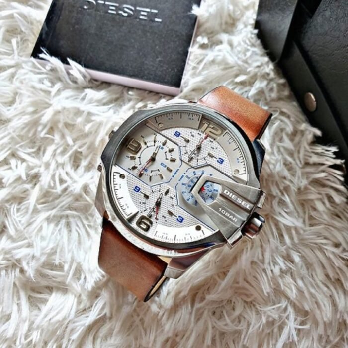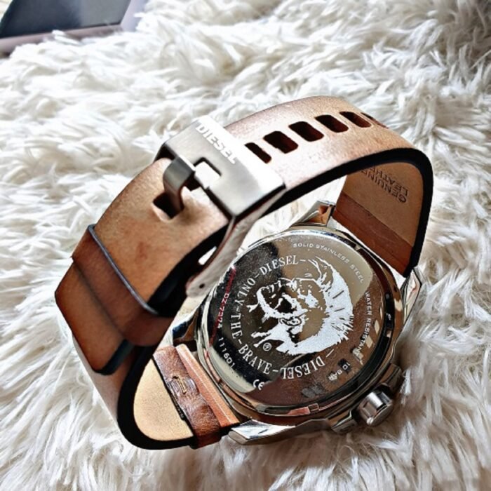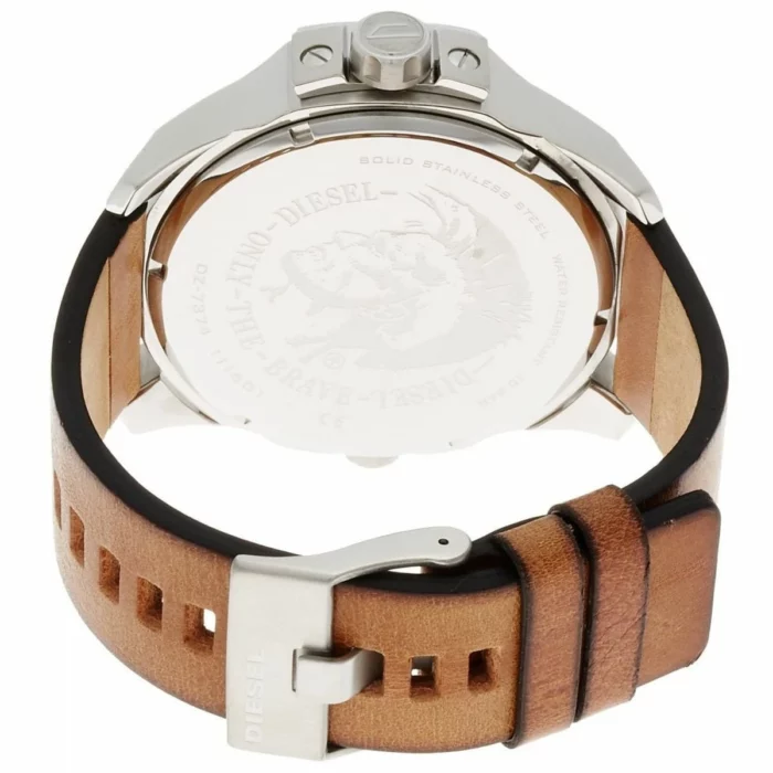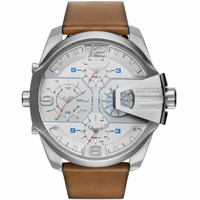 ساعة ديزل للرجال اصلية موديل (اوبر شيف) Uber Chief DZ7374 لون فضى واستيك جلد طبيعي لون بني.