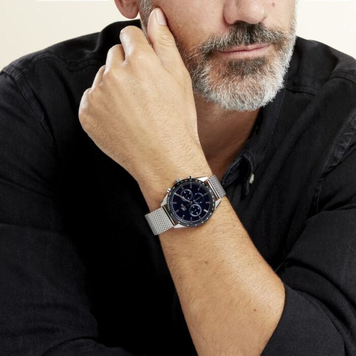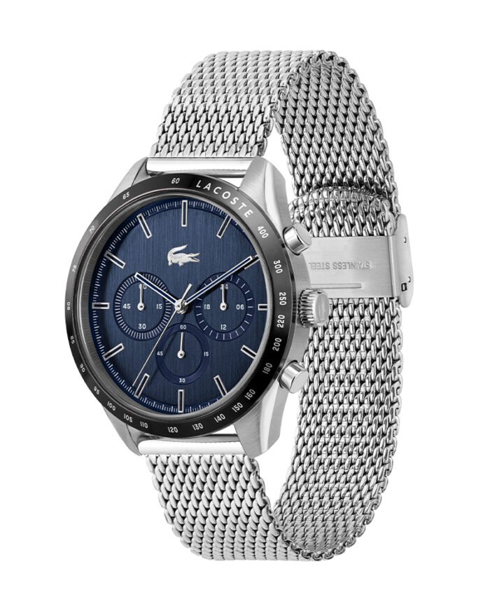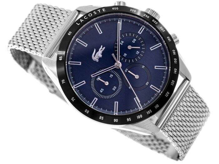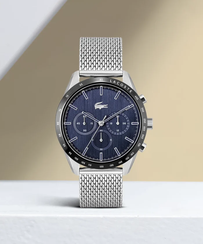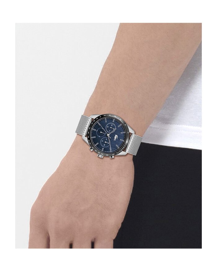 ساعة لاكوست Lacoste للرجال أصلية موديل 2011163 لون ازرق و استيك معدن ستانلس لون فضي.