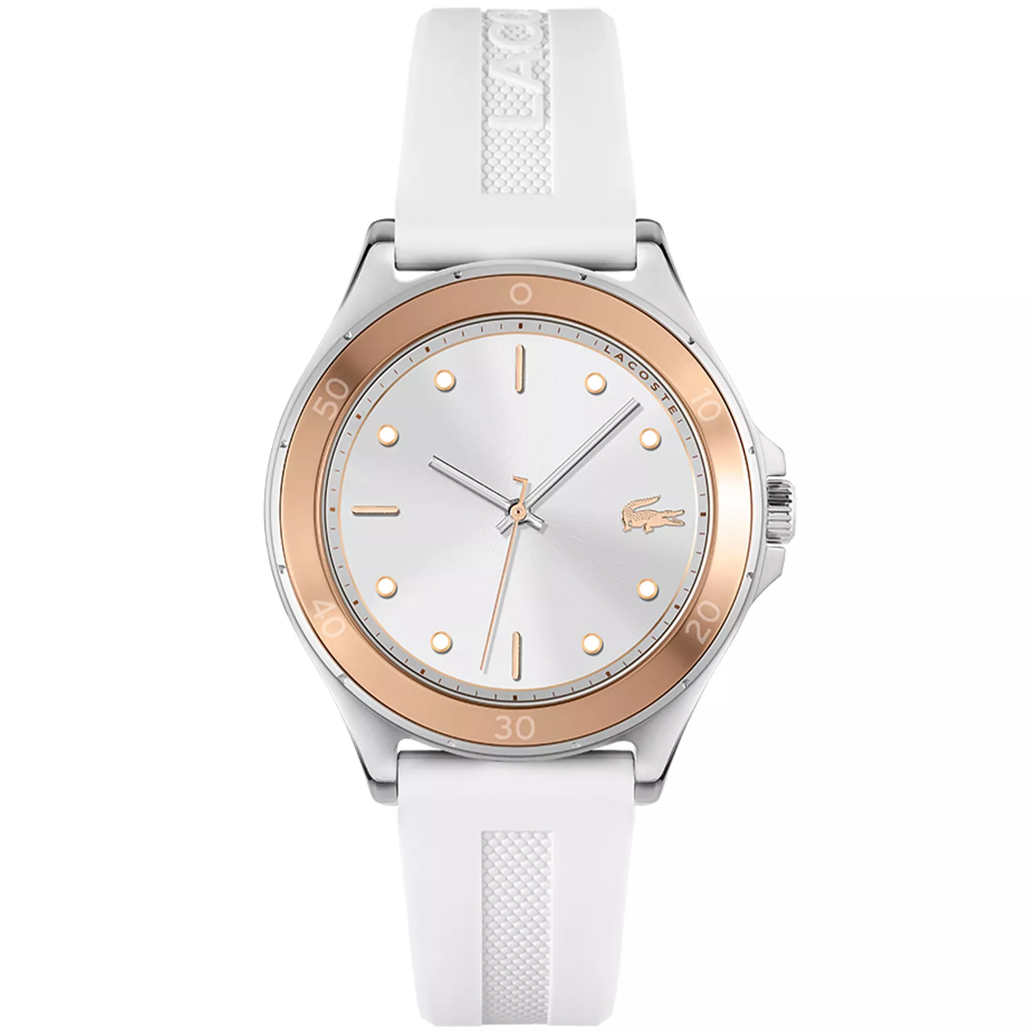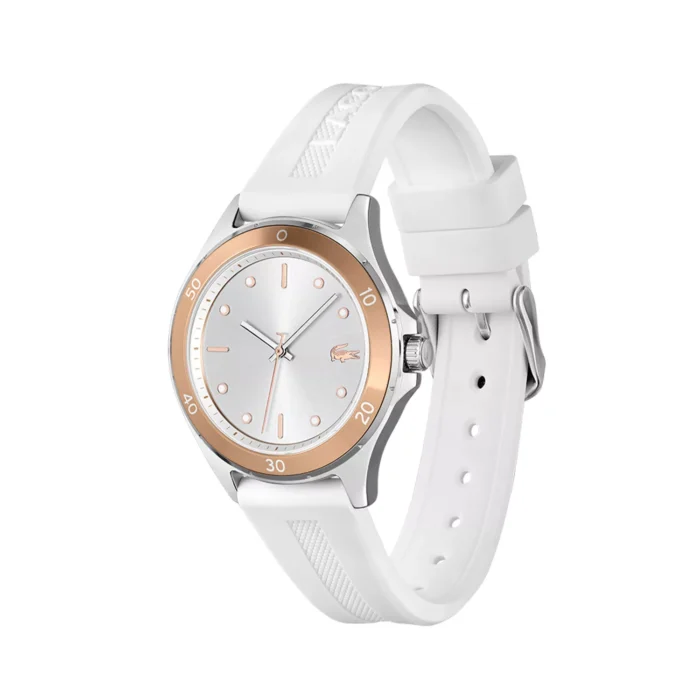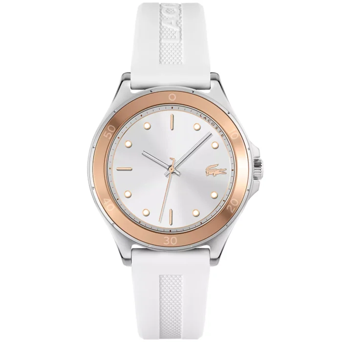 ساعة لاكوست Lacoste للنساء أصلية موديل 2001225 لون ابيض و استيك سيليكون مطاط لون ابيض.