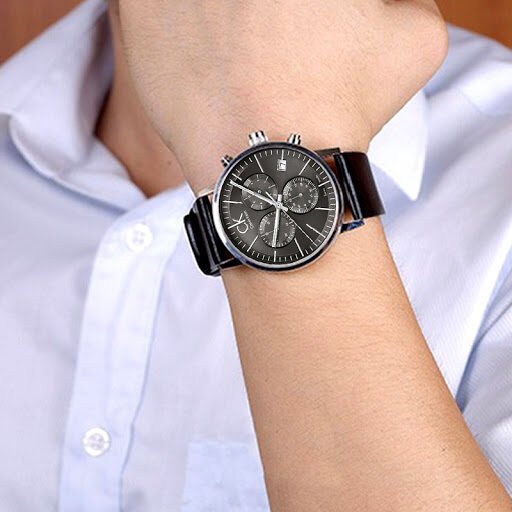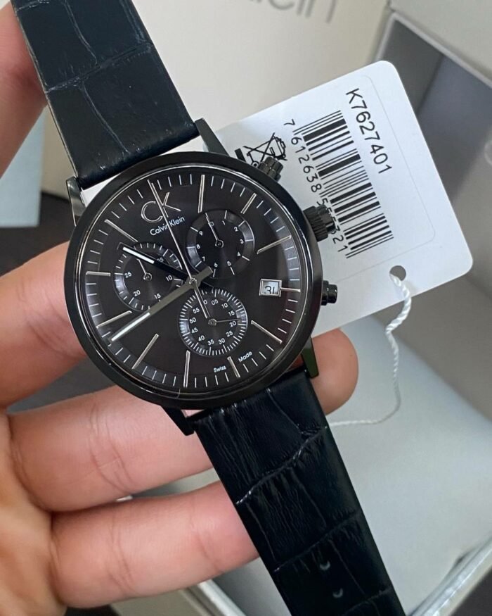 ساعة كالفن كلاين للرجال أصلية موديل Post Minimal K7627401 لون اسود و استيك جلد طبيعي لون اسود.