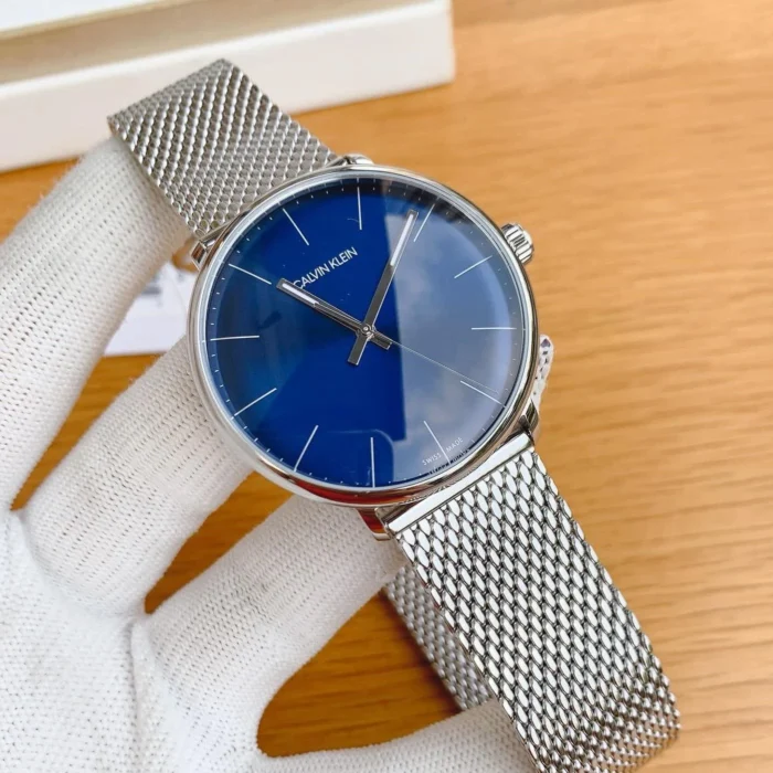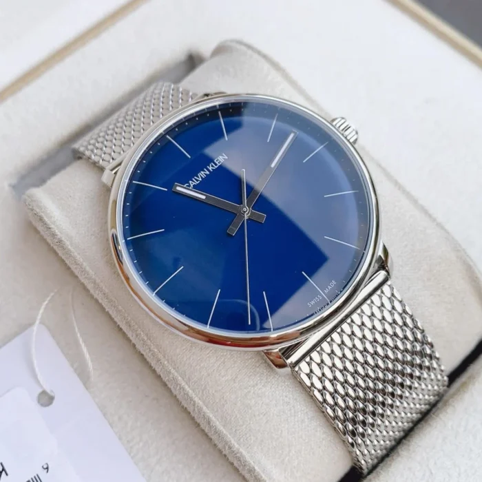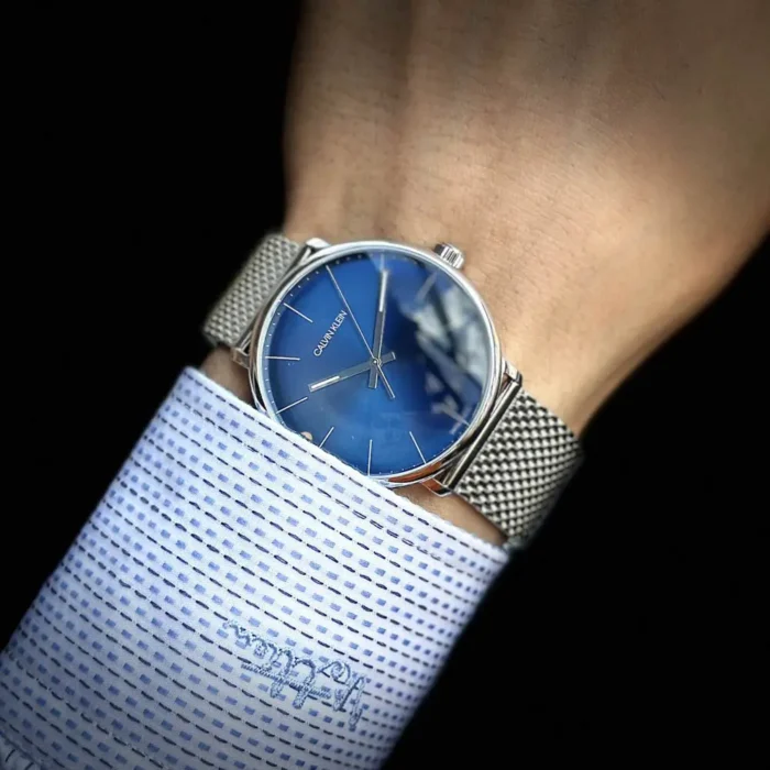 ساعة كالفن كلاين للرجال أصلية موديل High Noon K8M2112N لون ازرق و استيك معدن ستانلس لون فضي.
