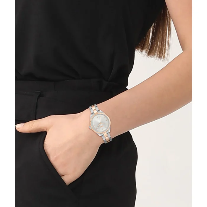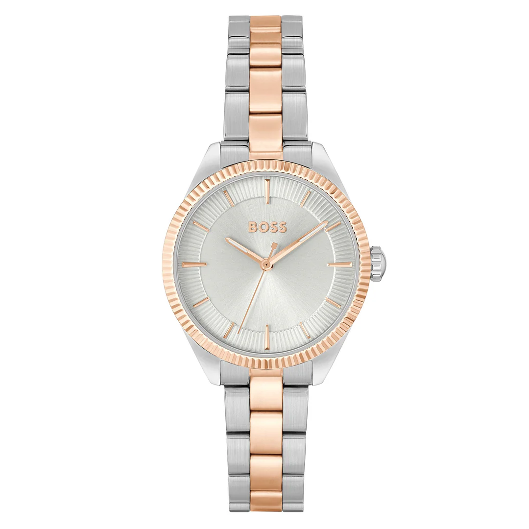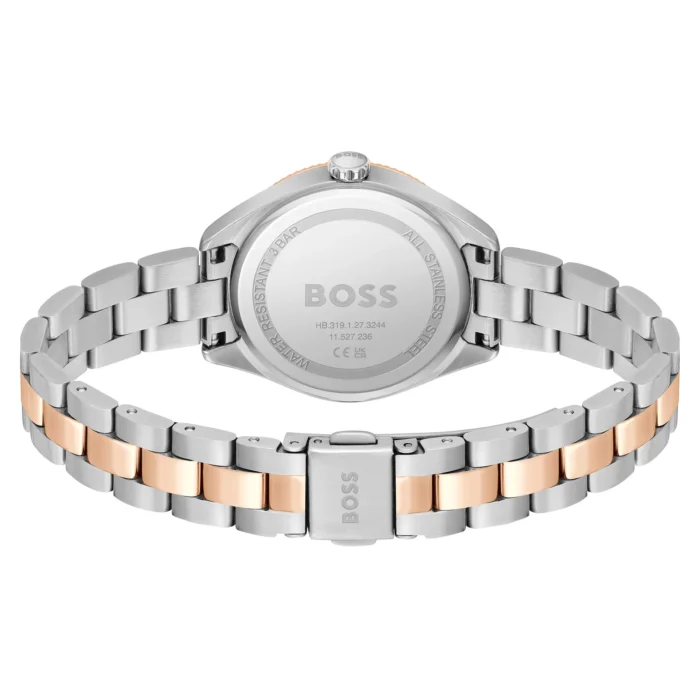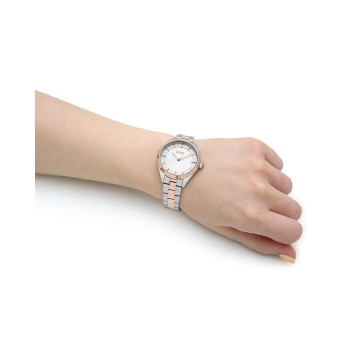 ساعة هوجو بوس Hugo Boss للنساء اصلية موديل 1502727 لون فضي و استيك معدن ستانلس لون فضي * روز جولد.