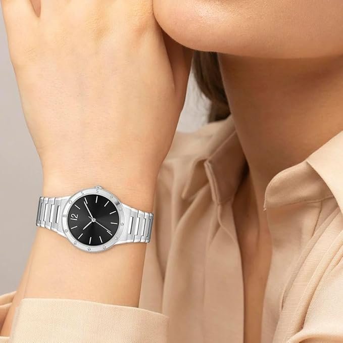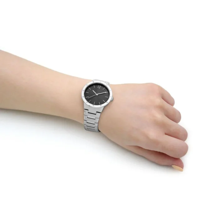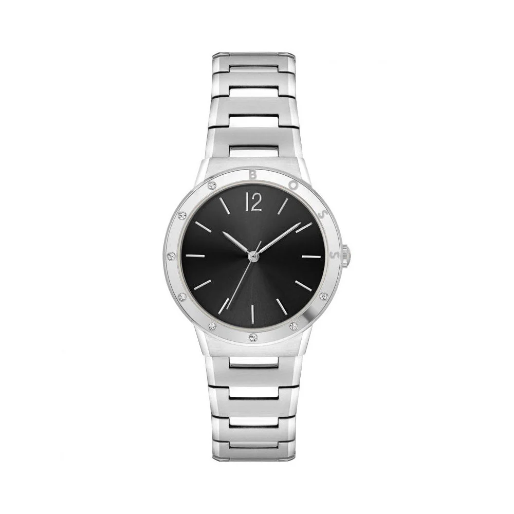 ساعة هوجو بوس Hugo Boss للنساء اصلية موديل 1502647 لون اسود و استيك معدن ستانلس لون فضي.