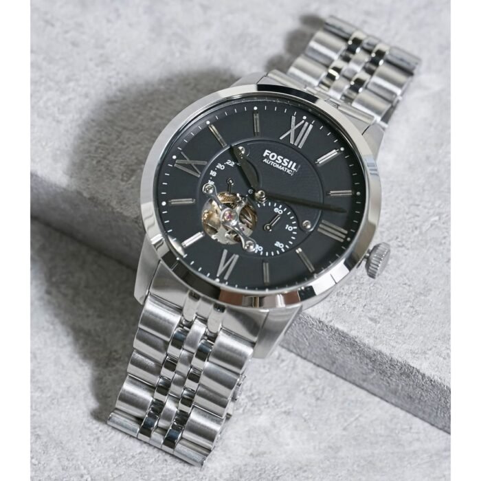 ساعة فوسيل للرجال أصلية موديل Townsman ME3107 لون اسود و استيك معدن ستانلس لون فضي.