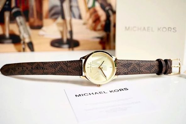 ساعة مايكل كورس للنساء أصلية موديل MK2862 لون ذهبي و استيك جلد طبيعي لون بني.