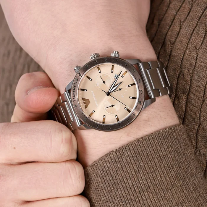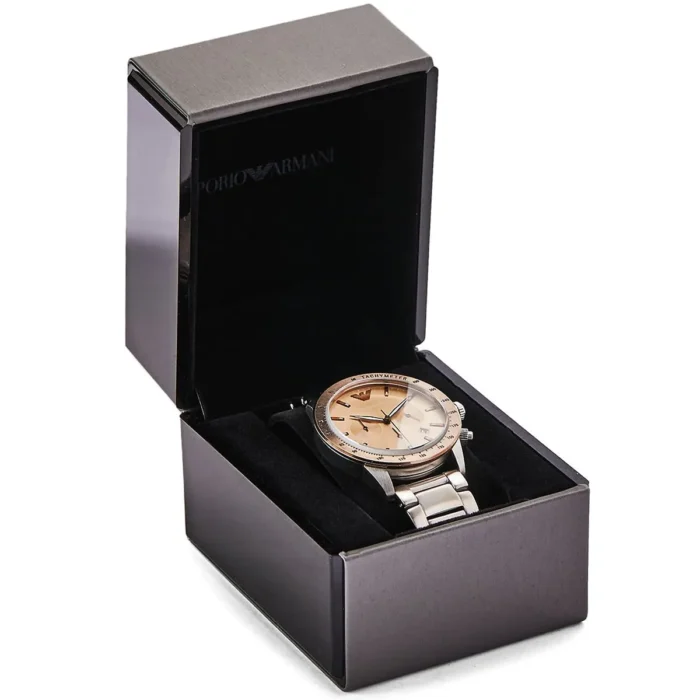 ساعة امبوريو ارماني Emporio Armani للرجال أصلية موديل Mario AR11352 لون روز جولد و استيك معدن ستانلس لون فضي.