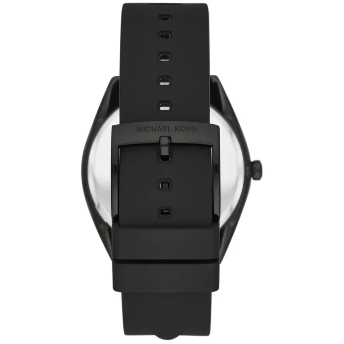 ساعة مايكل كورس Michael Kors للنساء أصلية موديل Janelle MK7138 لون فضي و استيك سيليكون مطاط لون اسود.