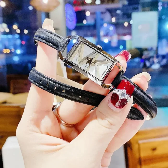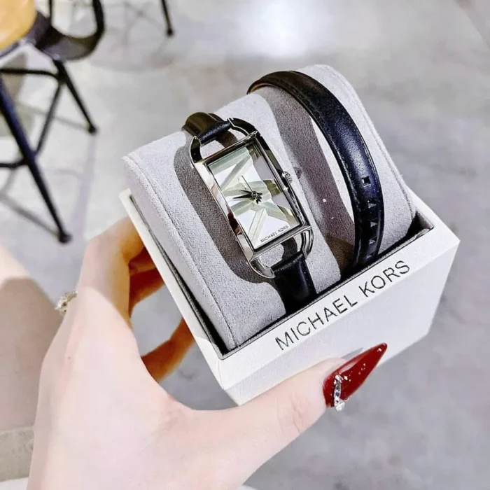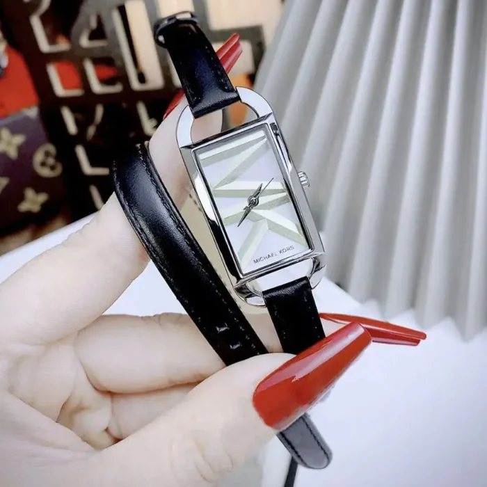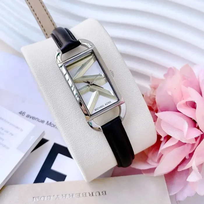 ساعة مايكل كورس Michael Kors للنساء أصلية موديل MK Empire MK4722 لون فضي و استيك جلد طبيعي لون اسود.