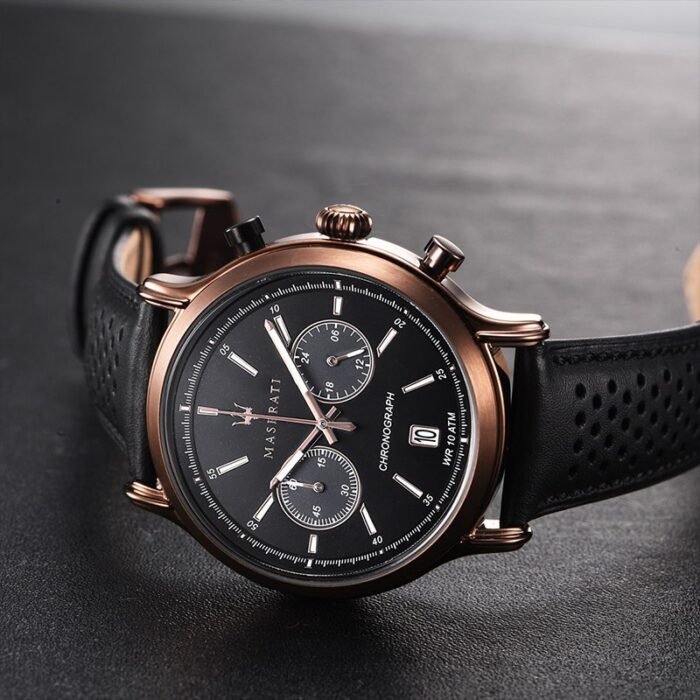 ساعة مازيراتي للرجال أصلية موديل Legend R8871638001 لون اسود و استيك جلد طبيعي لون اسود.